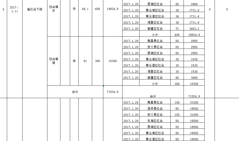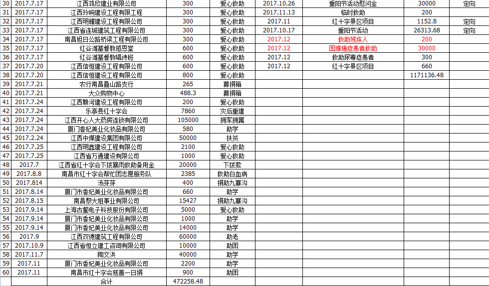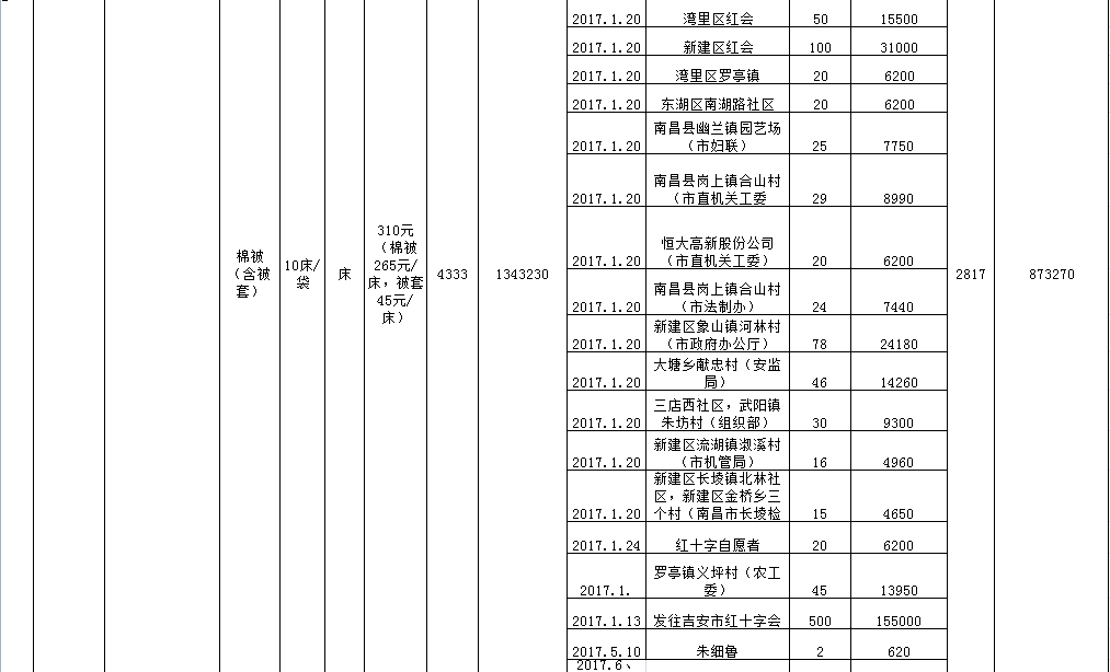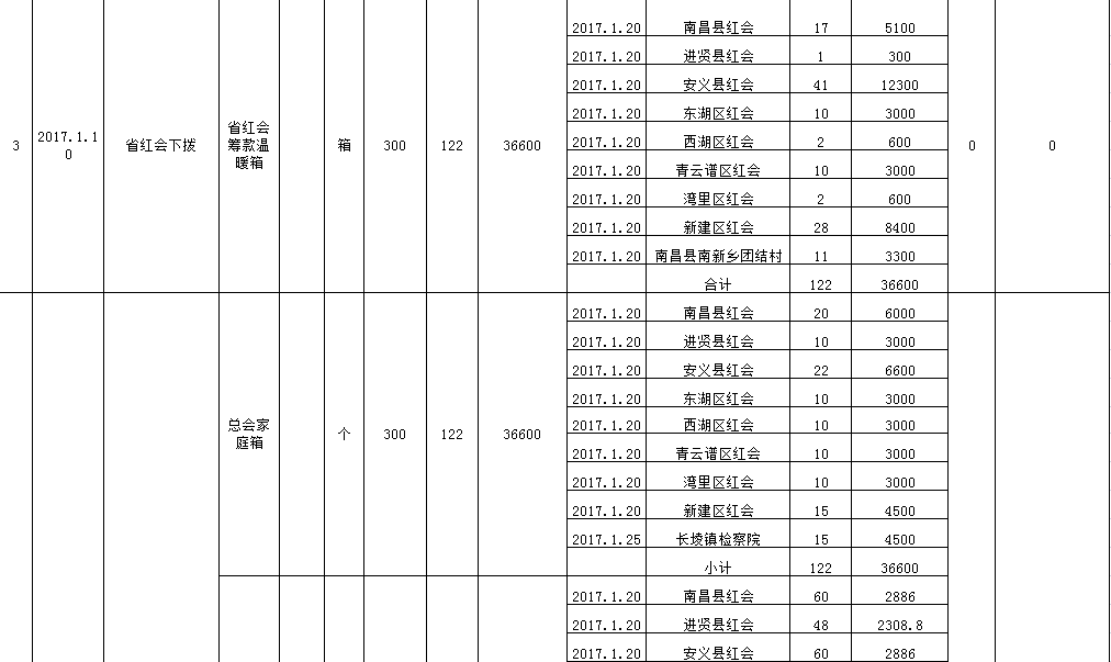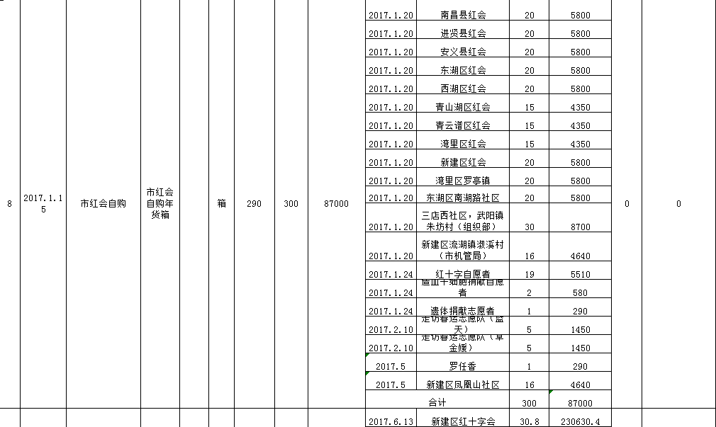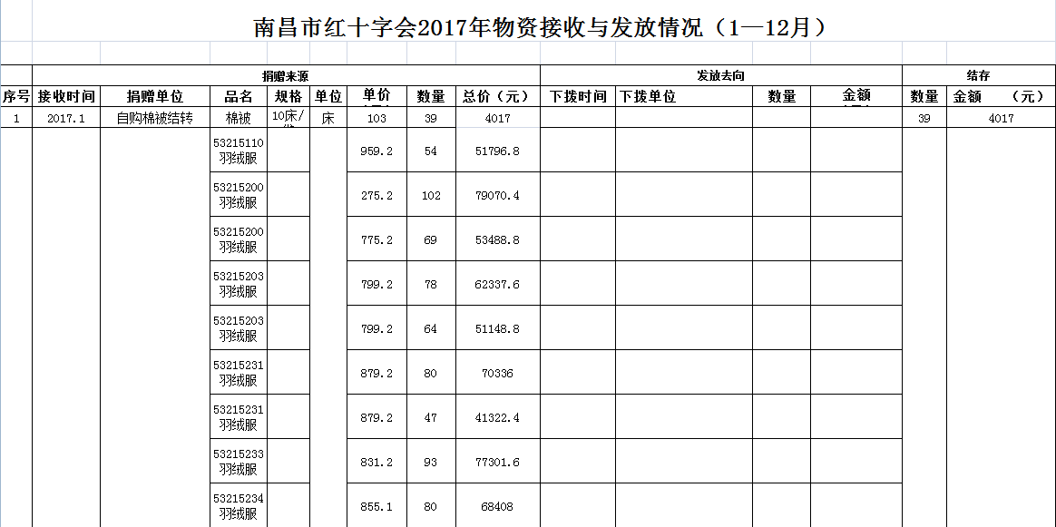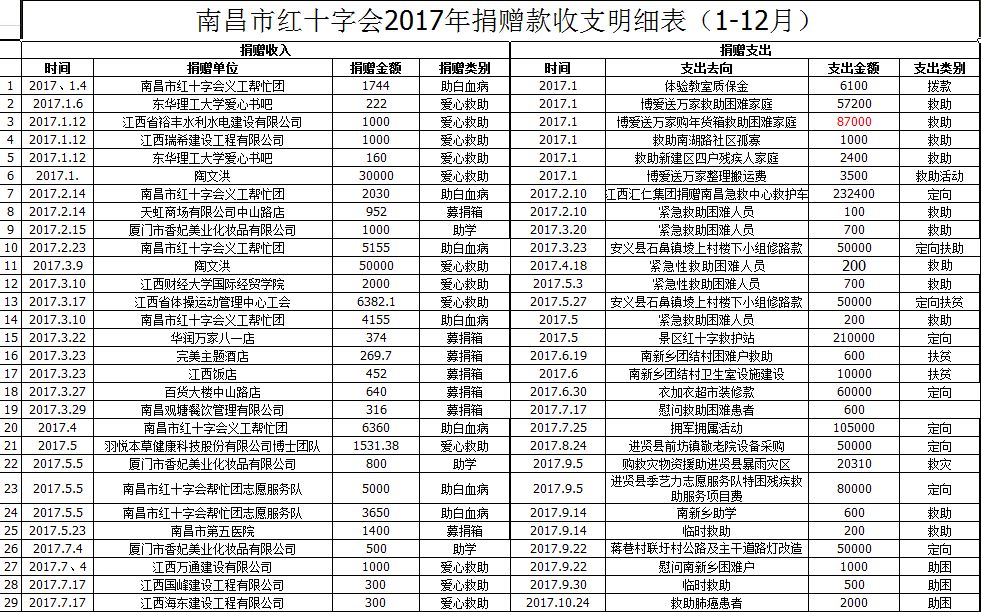 南昌市红十字会2017年捐赠款收支和物资接收发放明细表(1-12月)
