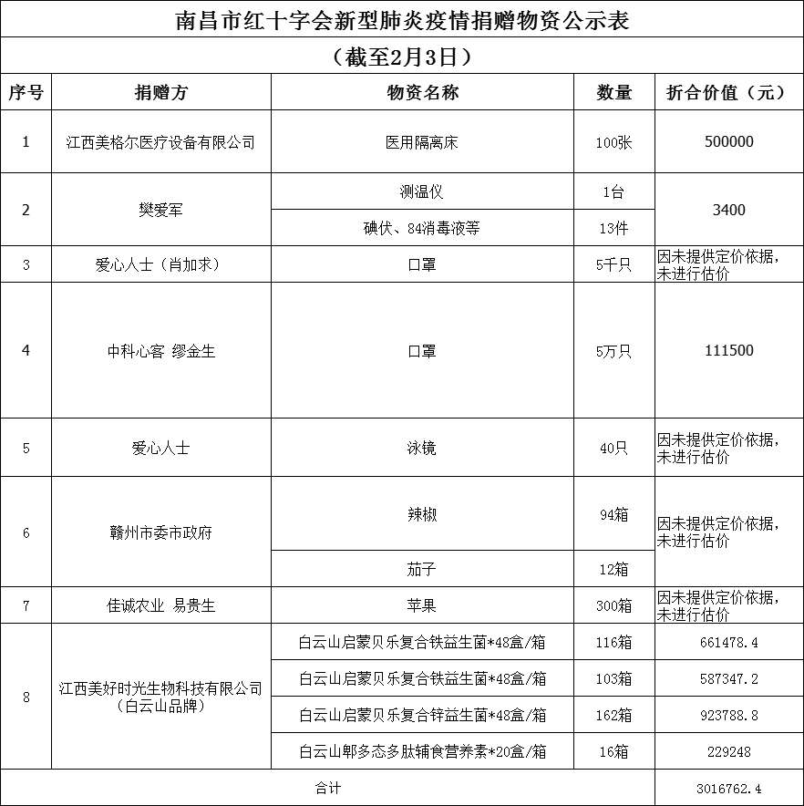 南昌市红十字会抗击新型肺炎疫情接收捐赠款物公示(四)