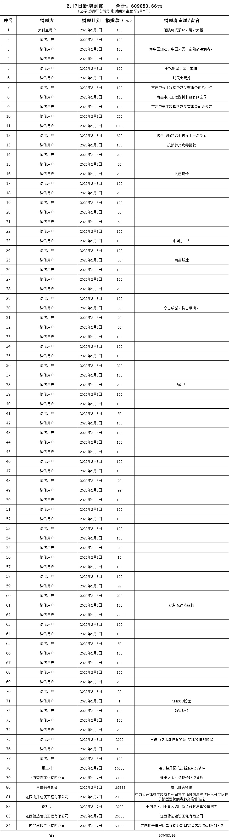 南昌市红十字会抗击新型肺炎疫情接收捐赠款物公示(七)