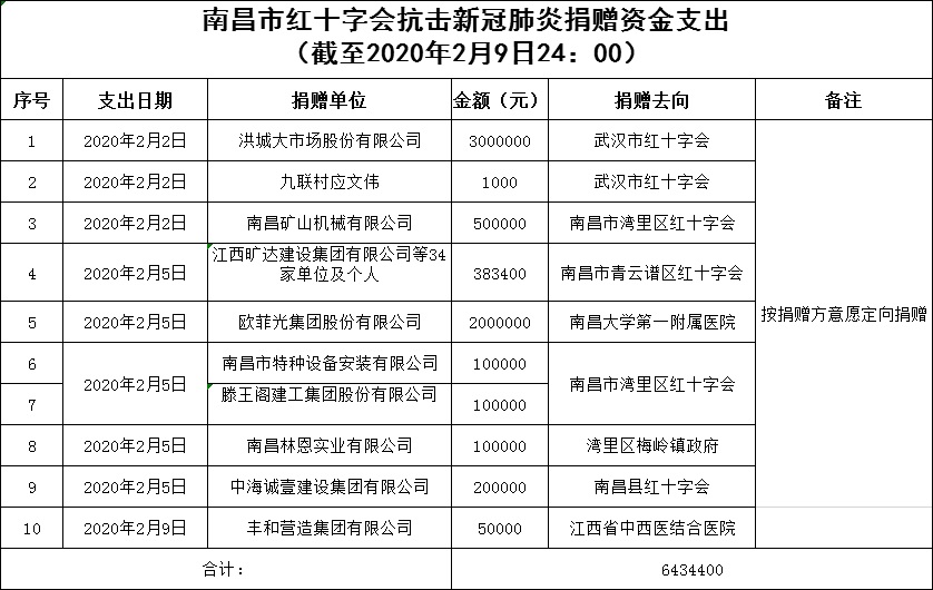 南昌市红十字会抗击新冠肺炎疫情捐赠款物支出情况公示(四)