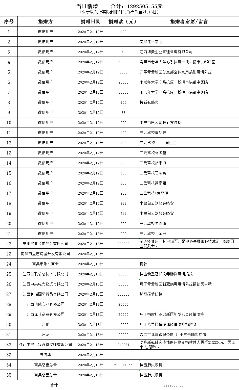 南昌市红十字会抗击新冠肺炎疫情接收捐赠款物公示(十三)