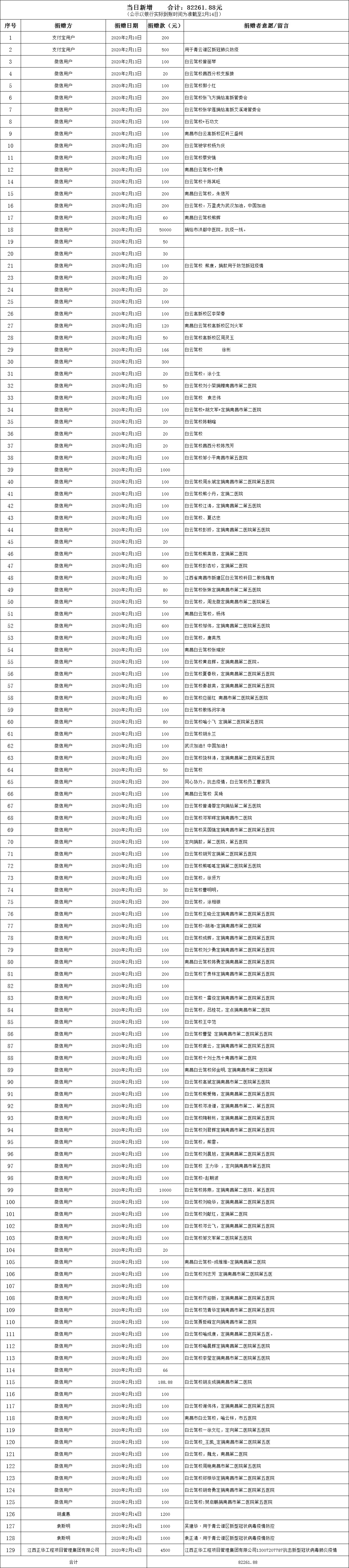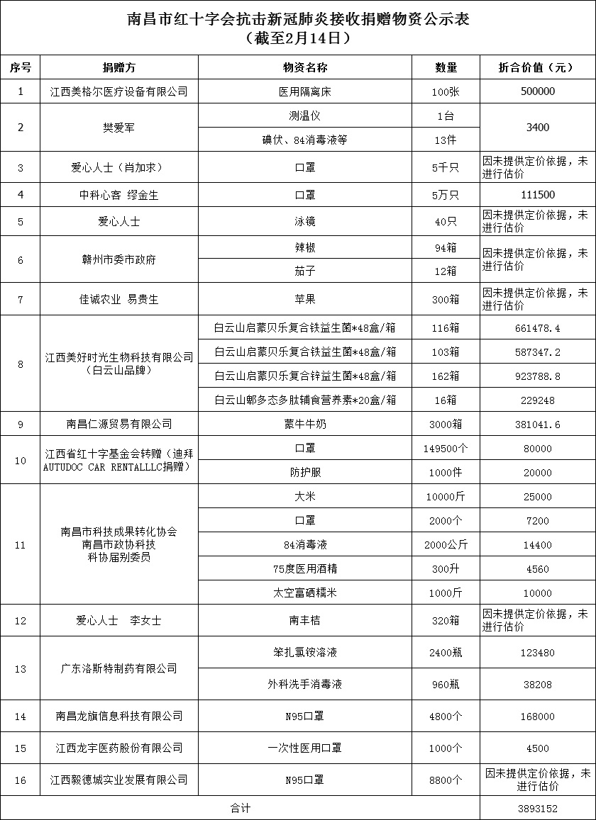 南昌市红十字会抗击新冠肺炎疫情接收捐赠款物公示(十四)