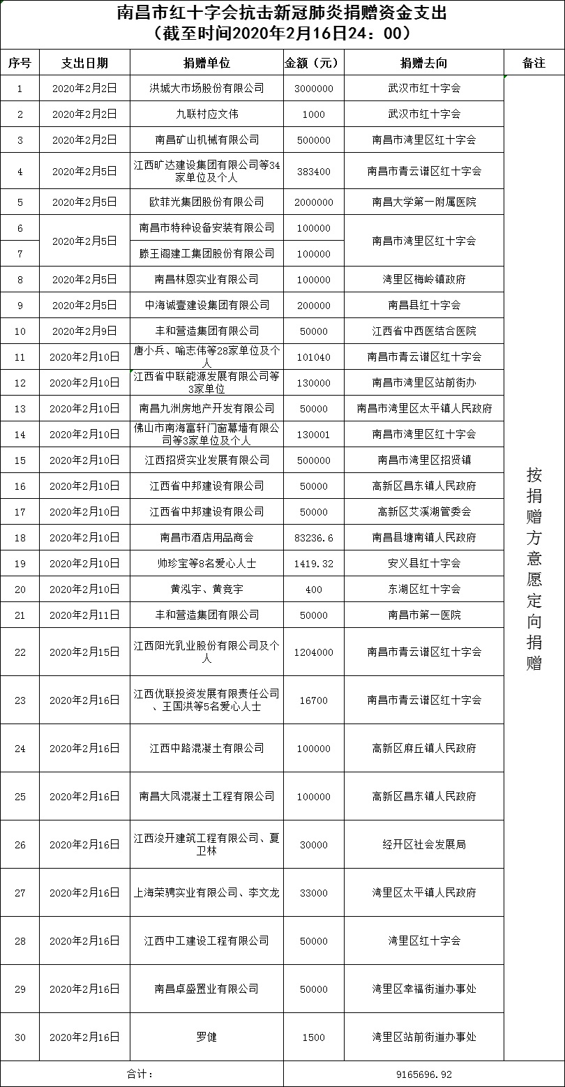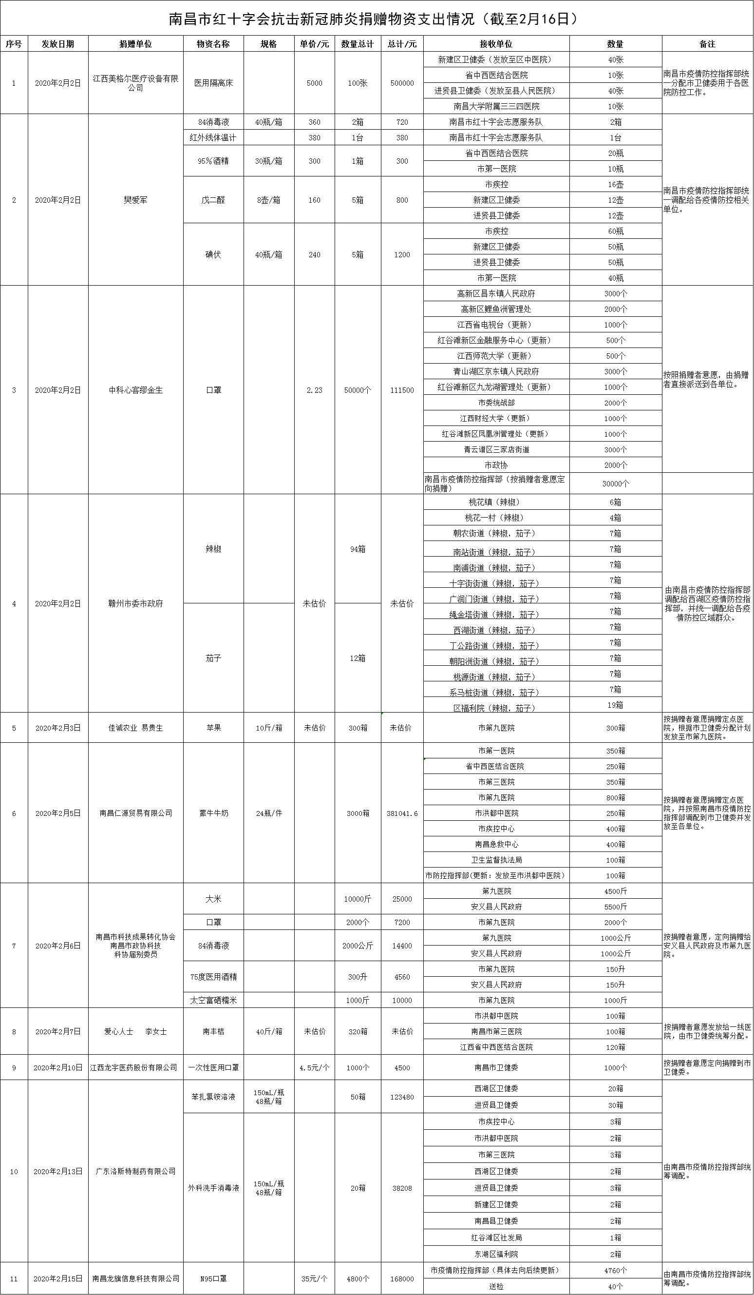 南昌市红十字会抗击新冠肺炎疫情捐赠款物支出情况公示(十一)