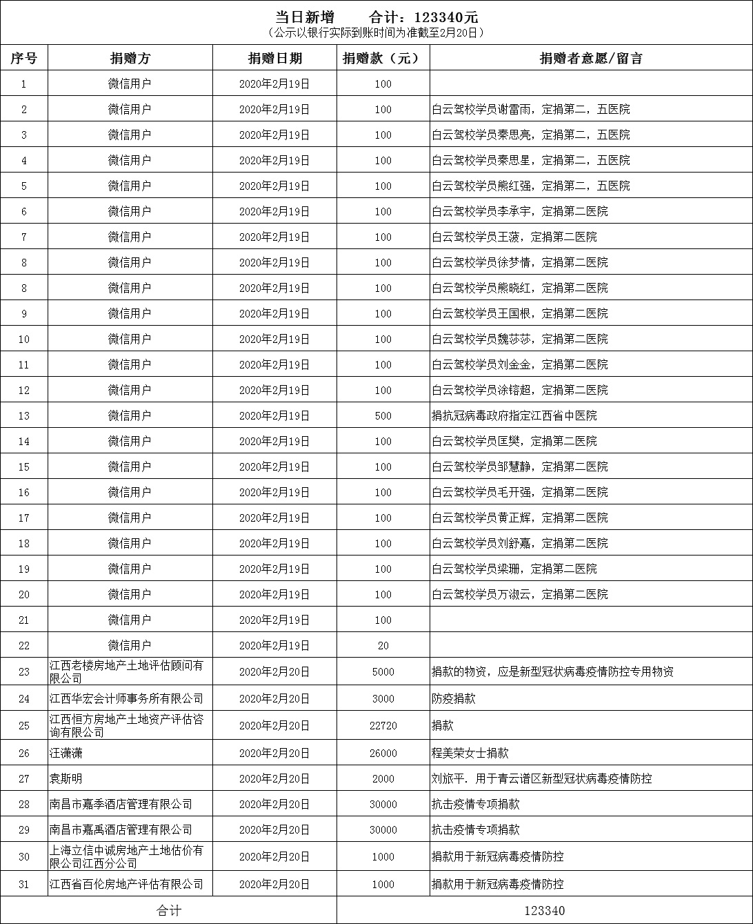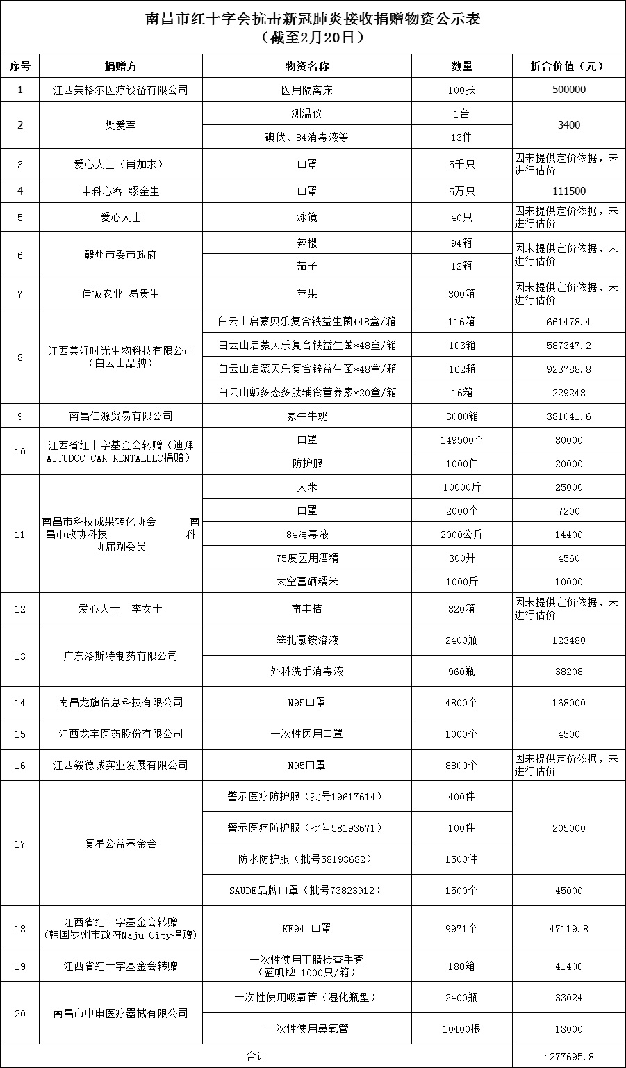 南昌市红十字会抗击新冠肺炎疫情接收捐赠款物公示(二十)