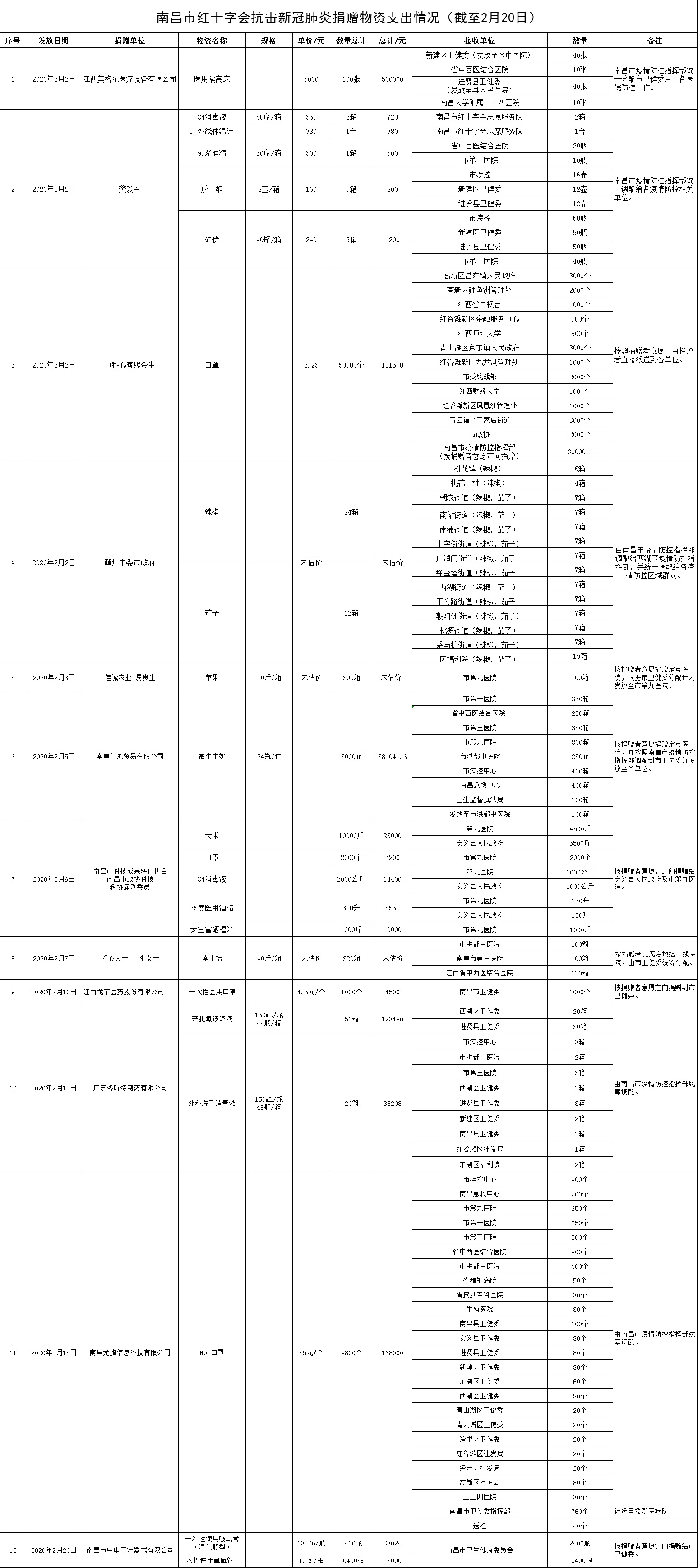 南昌市红十字会抗击新冠肺炎疫情捐赠款物支出情况公示(十五)