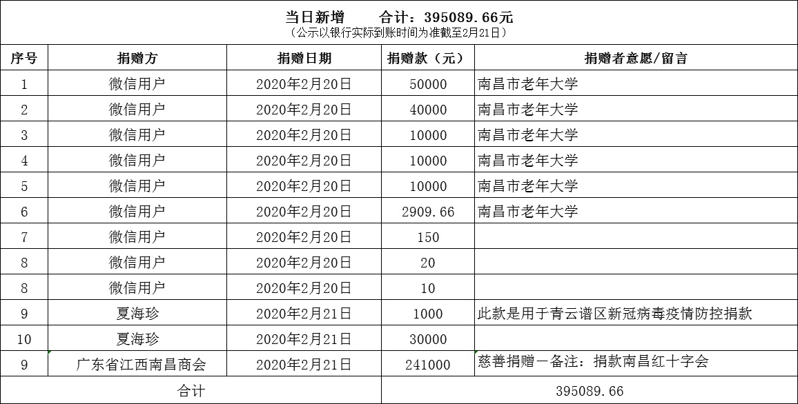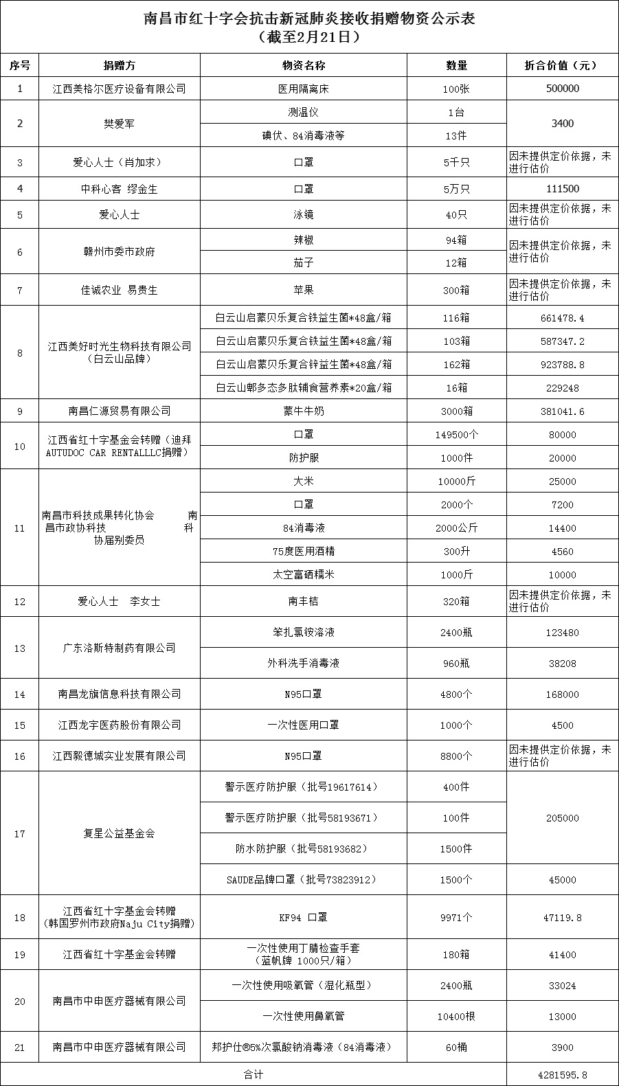 南昌市红十字会抗击新冠肺炎疫情接收捐赠款物公示(二十一)