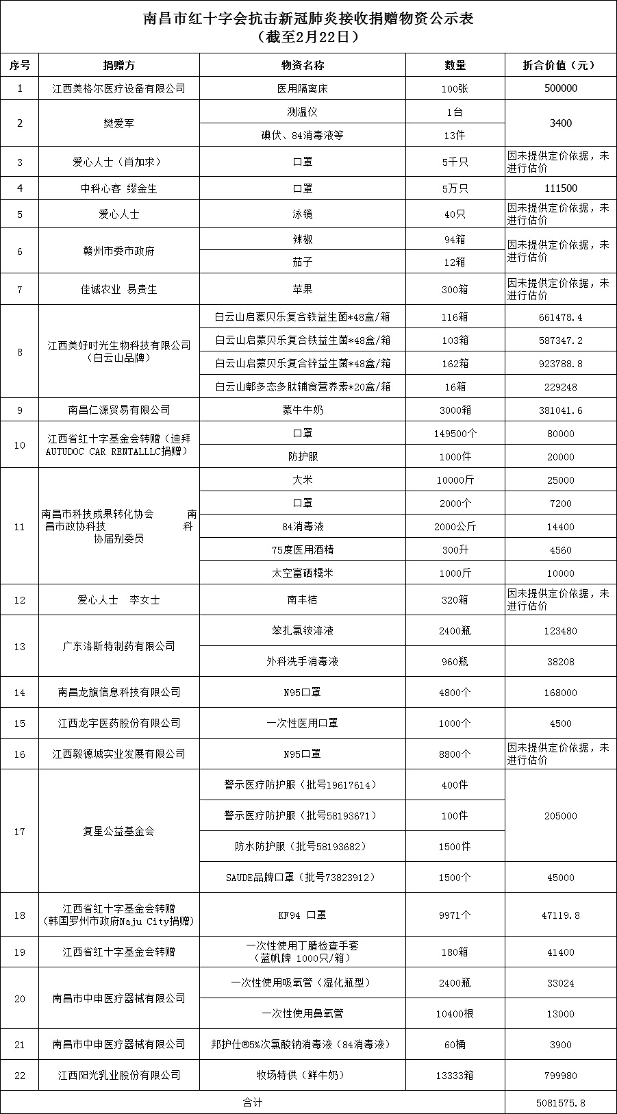 南昌市红十字会抗击新冠肺炎疫情接收捐赠款物公示(二十二)
