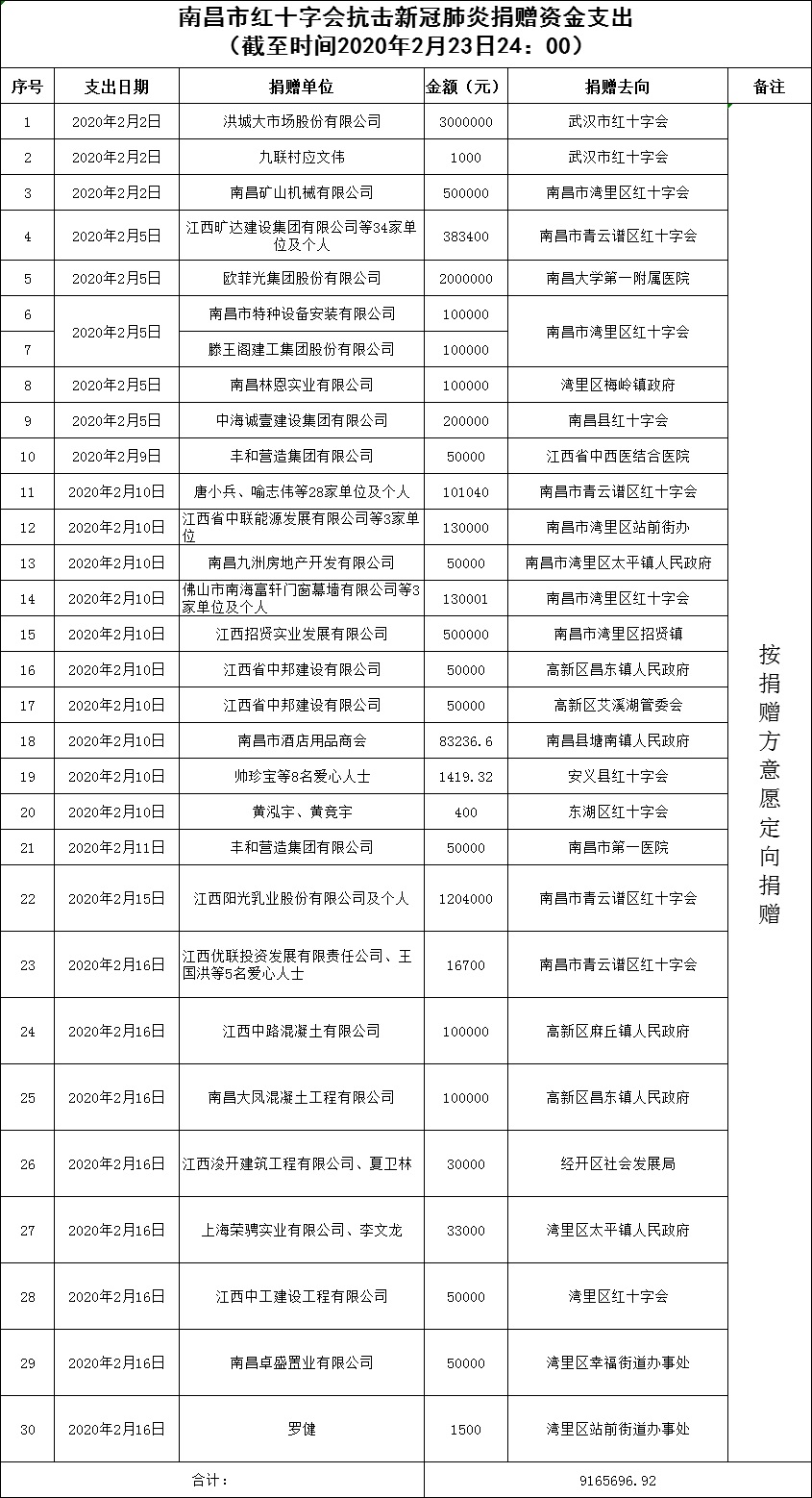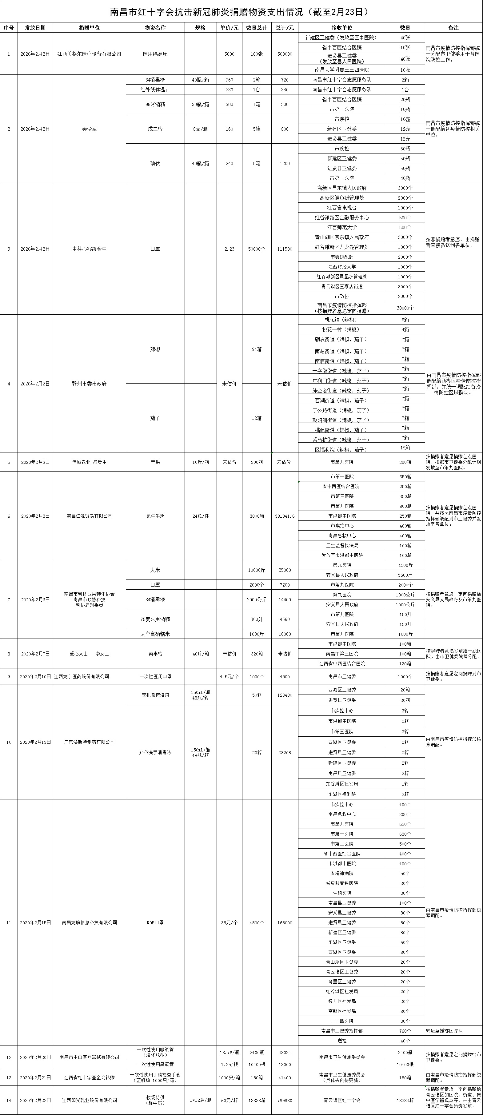 南昌市红十字会抗击新冠肺炎疫情捐赠款物支出情况公示(十八)