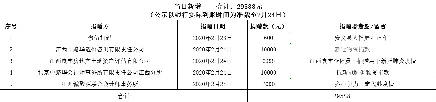 南昌市红十字会抗击新冠肺炎疫情接收捐赠款物公示(二十四)