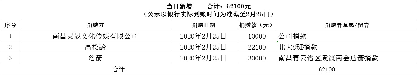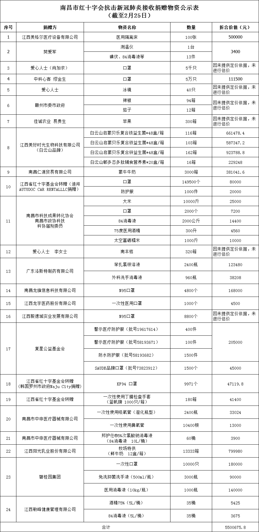 南昌市红十字会抗击新冠肺炎疫情接收捐赠款物公示(二十五)