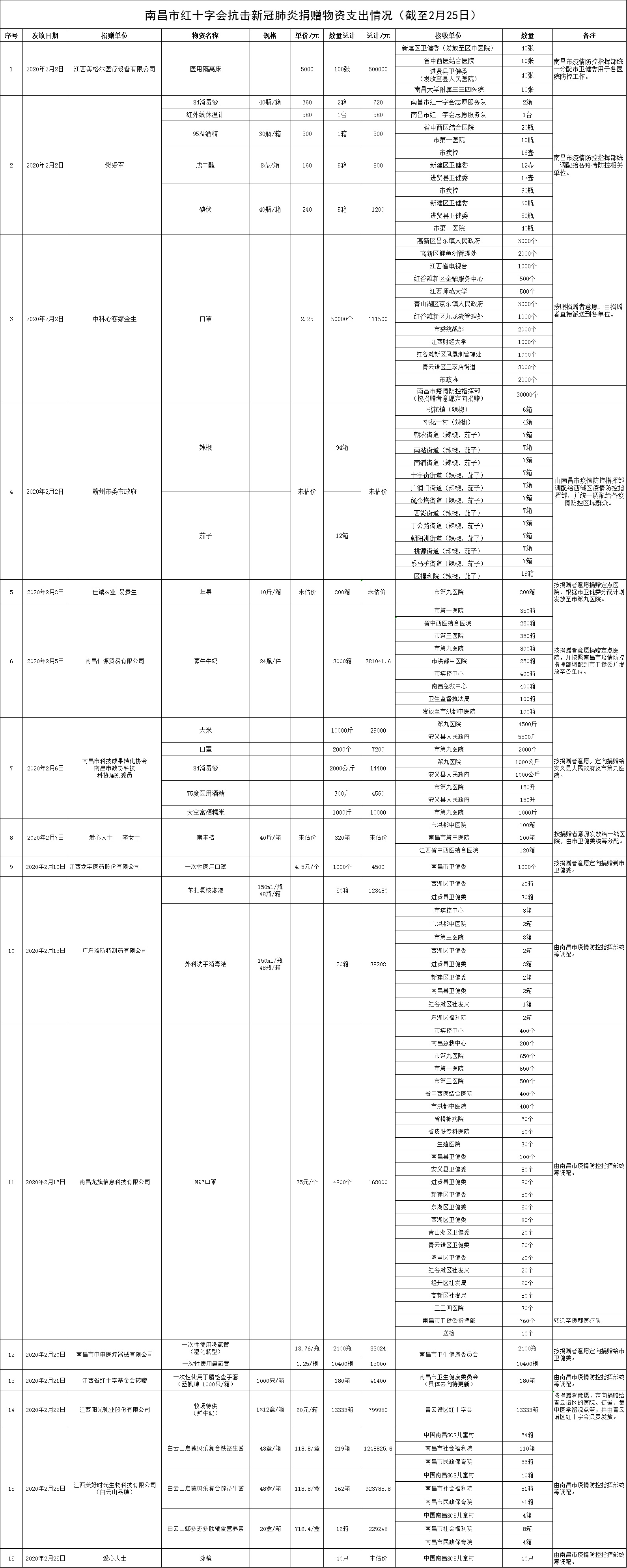 南昌市红十字会抗击新冠肺炎疫情捐赠款物支出情况公示(二十)