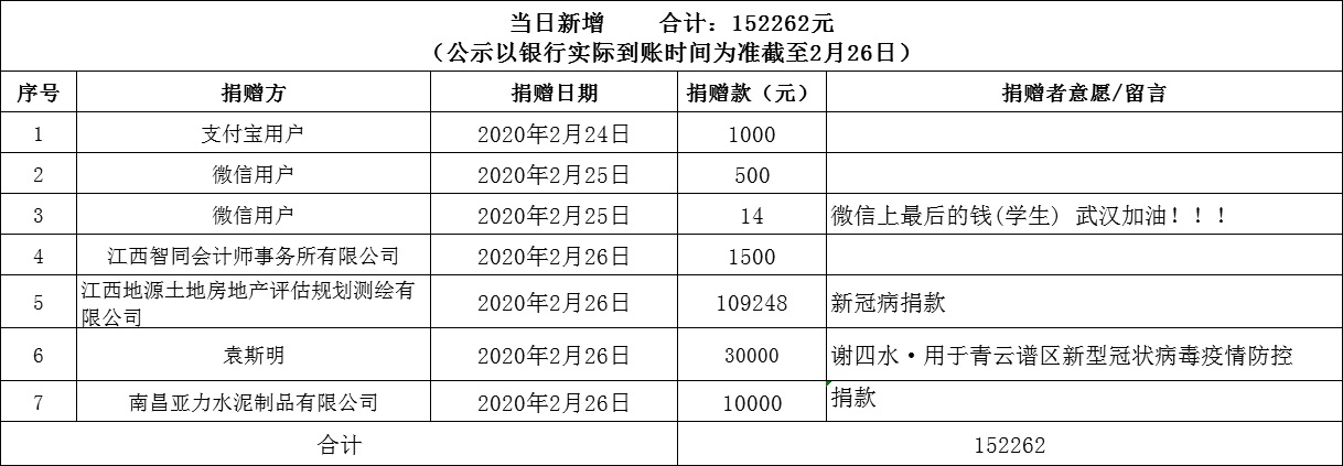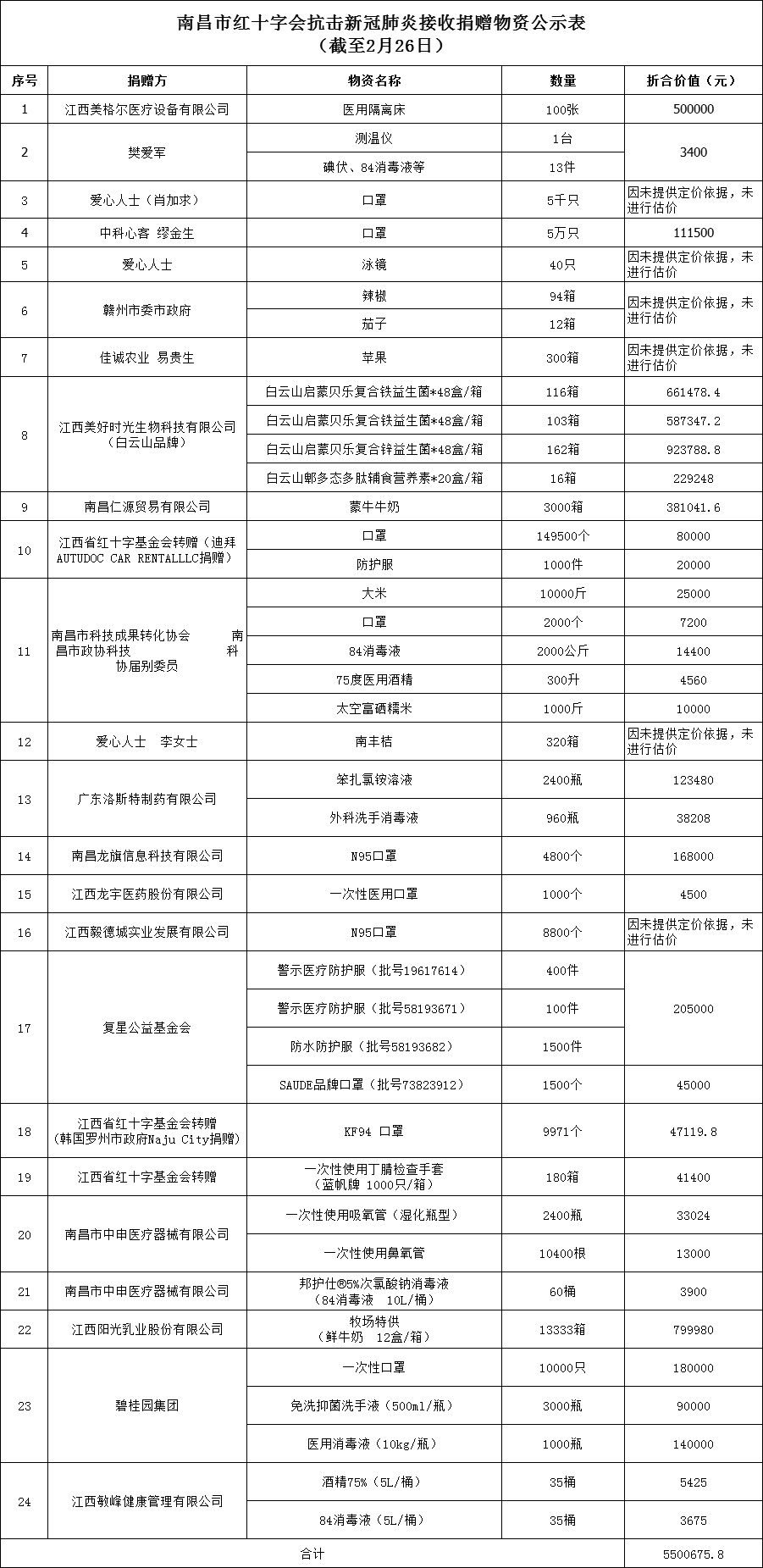 南昌市红十字会抗击新冠肺炎疫情接收捐赠款物公示(二十六)