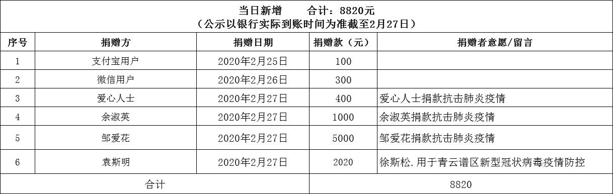 南昌市红十字会抗击新冠肺炎疫情接收捐赠款物公示(二十七)