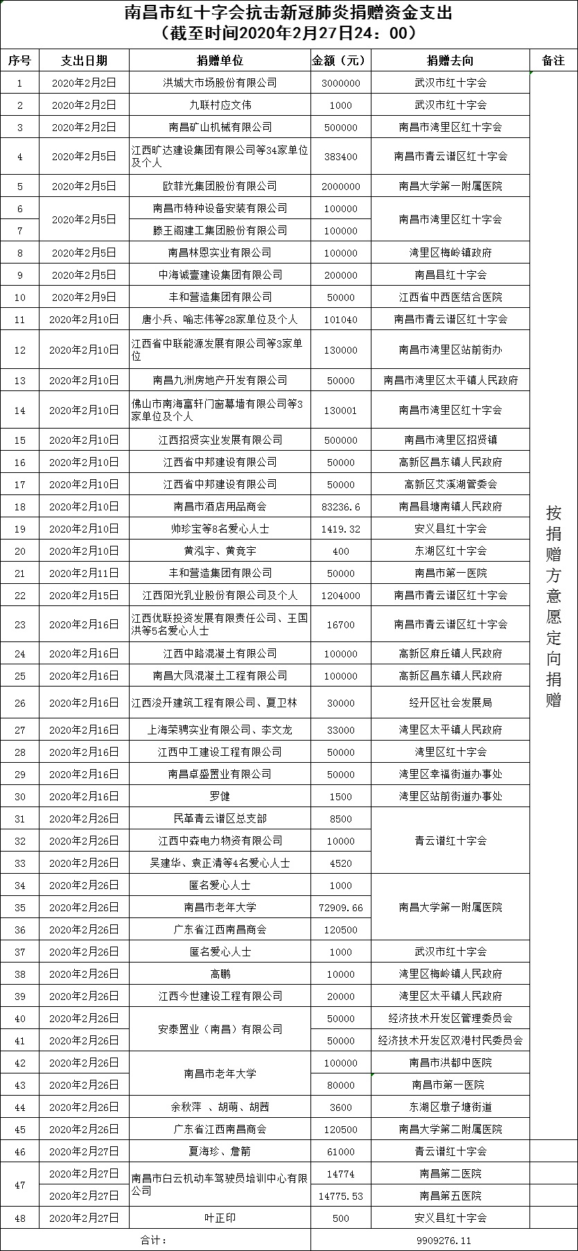 南昌市红十字会抗击新冠肺炎疫情捐赠款物支出情况公示(二十二)