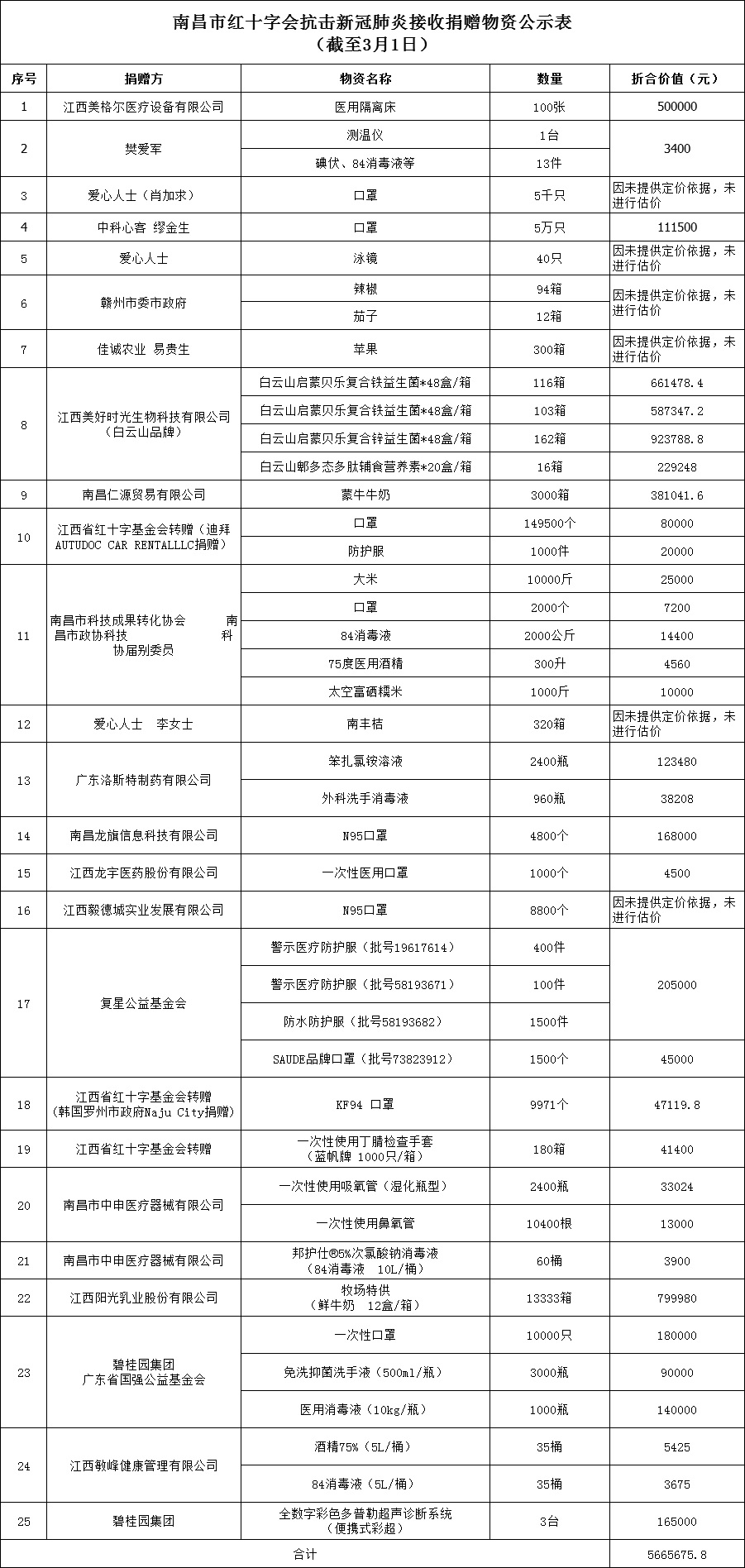 南昌市红十字会抗击新冠肺炎疫情接收捐赠款物公示(二十八)