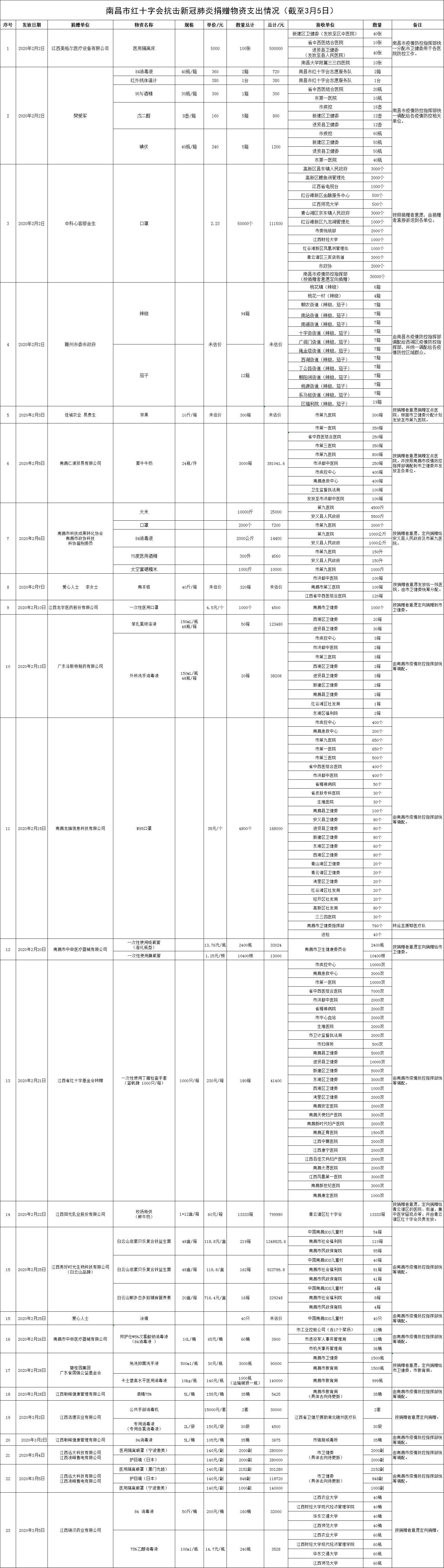 南昌市红十字会抗击新冠肺炎疫情捐赠款物支出情况公示(二十七)