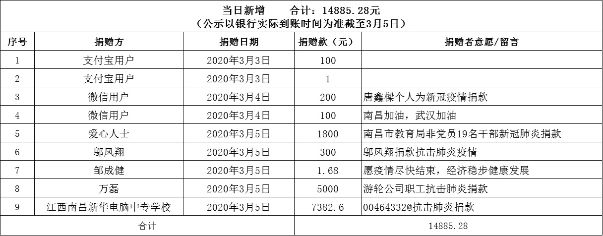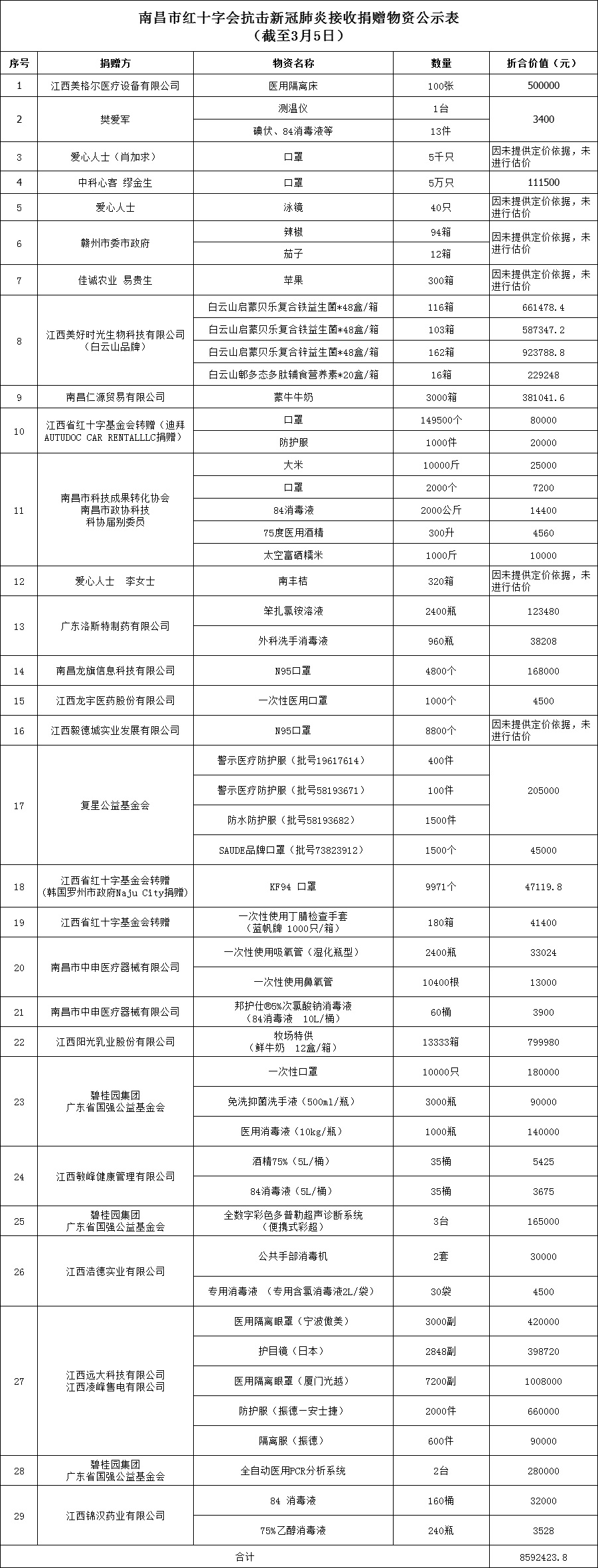 南昌市红十字会抗击新冠肺炎疫情接收捐赠款物公示(三十二)
