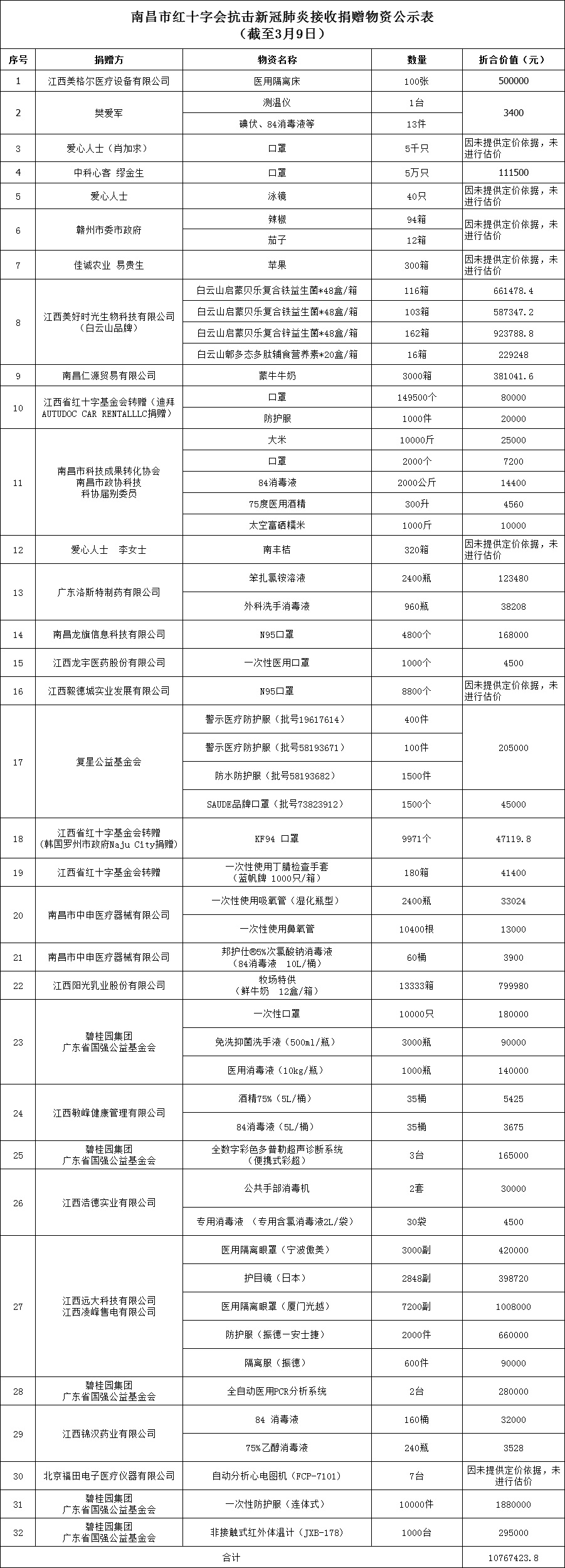 南昌市红十字会抗击新冠肺炎疫情接收捐赠款物公示(三十四)