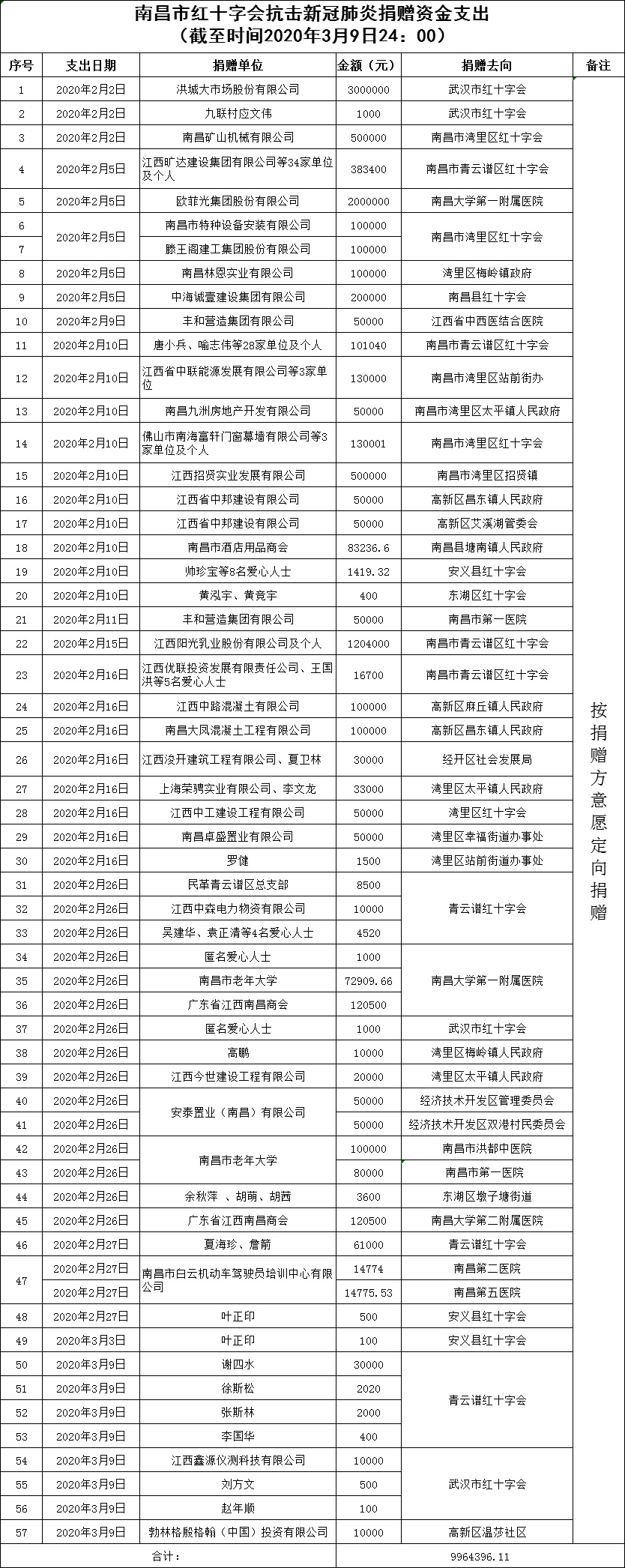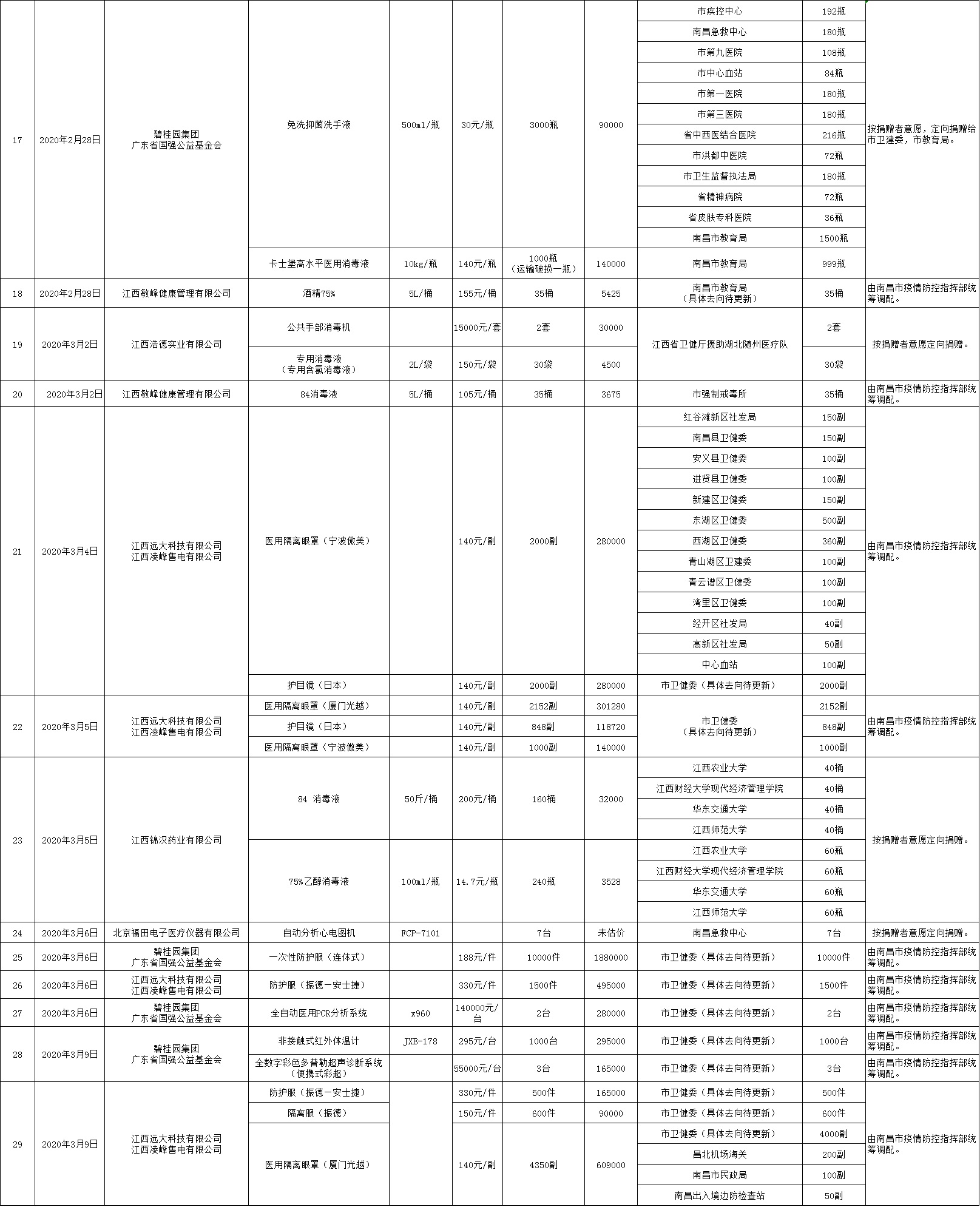 南昌市红十字会抗击新冠肺炎疫情捐赠款物支出情况公示(二十九)