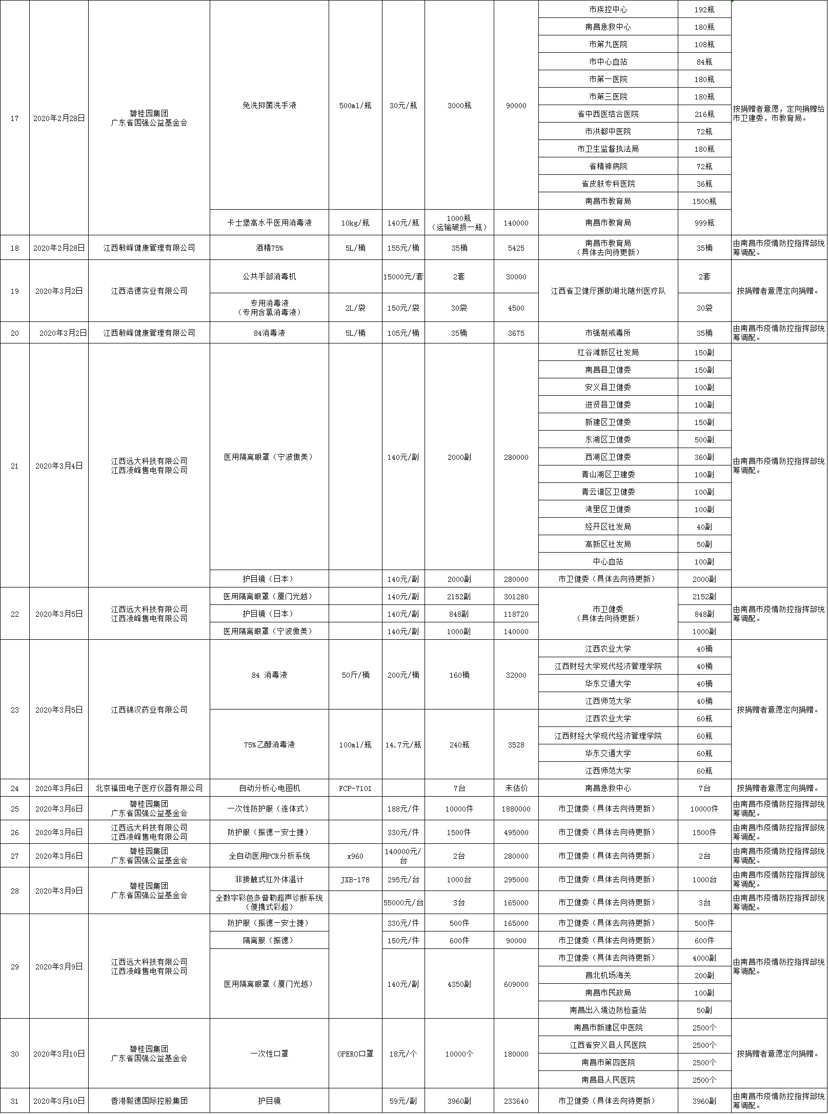南昌市红十字会抗击新冠肺炎疫情捐赠款物支出情况公示(三十)