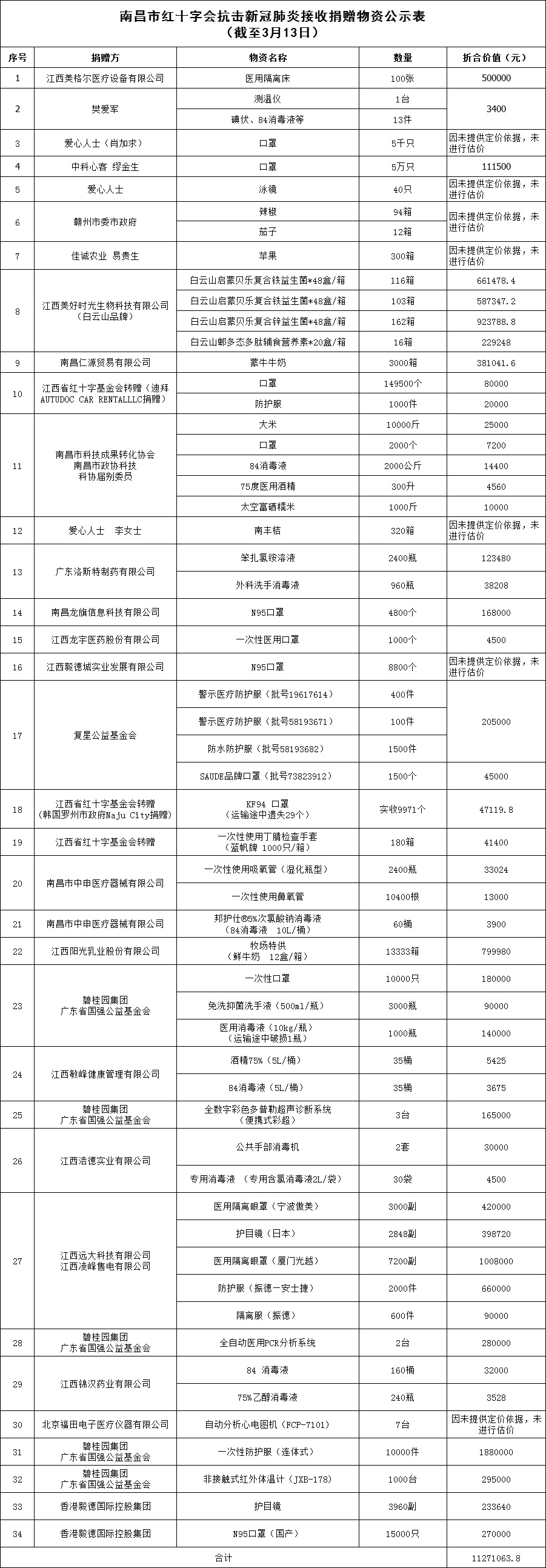 南昌市红十字会抗击新冠肺炎疫情接收捐赠款物公示(三十八)
