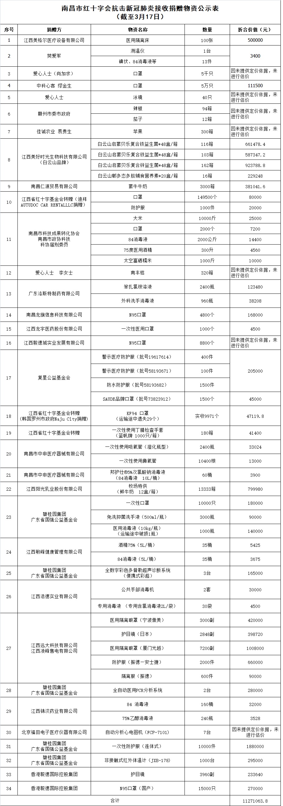 南昌市红十字会抗击新冠肺炎疫情接收捐赠款物公示(四十)