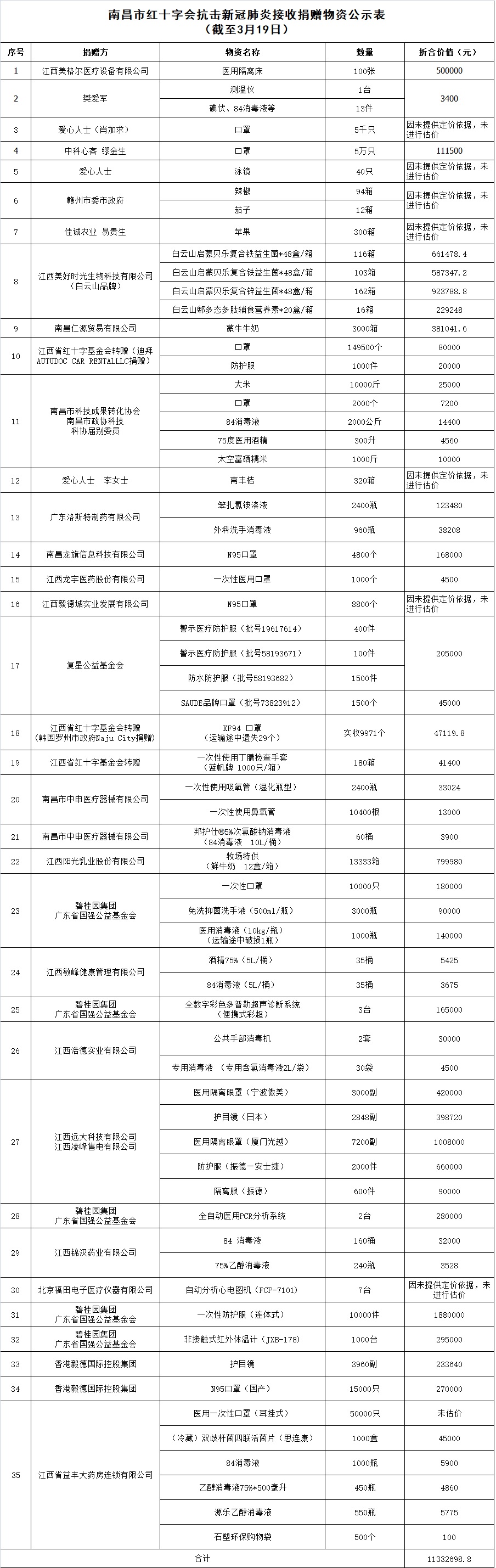 南昌市红十字会抗击新冠肺炎疫情接收捐赠款物公示(四十二)