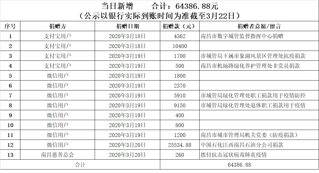 南昌市红十字会抗击新冠肺炎疫情接收捐赠款物公示(四十三)