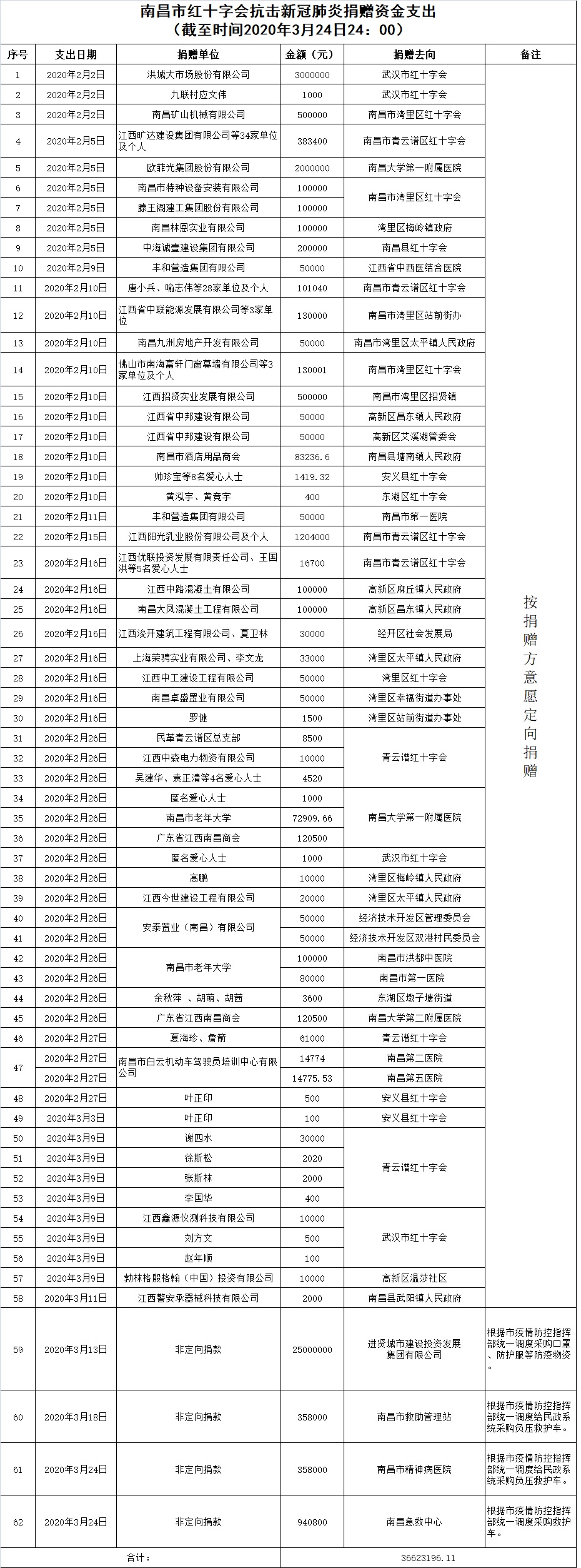 南昌市红十字会抗击新冠肺炎疫情捐赠款物支出情况公示(三十九)