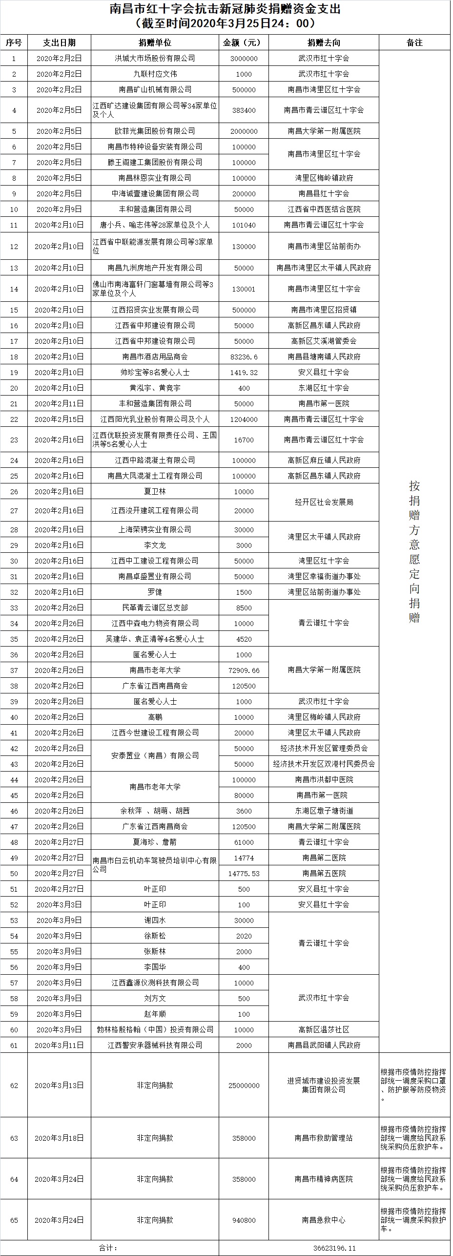 南昌市红十字会抗击新冠肺炎疫情捐赠款物支出情况公示(四十)