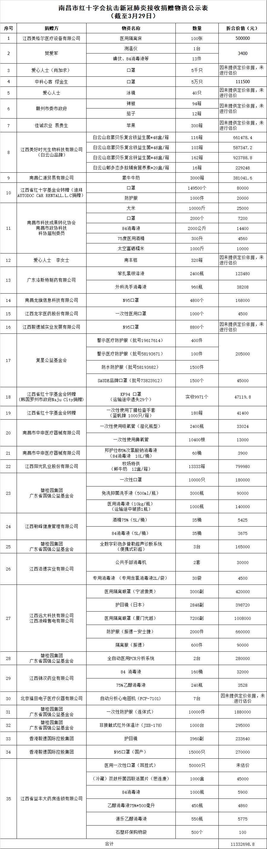 南昌市红十字会抗击新冠肺炎疫情接收捐赠款物公示(四十六)