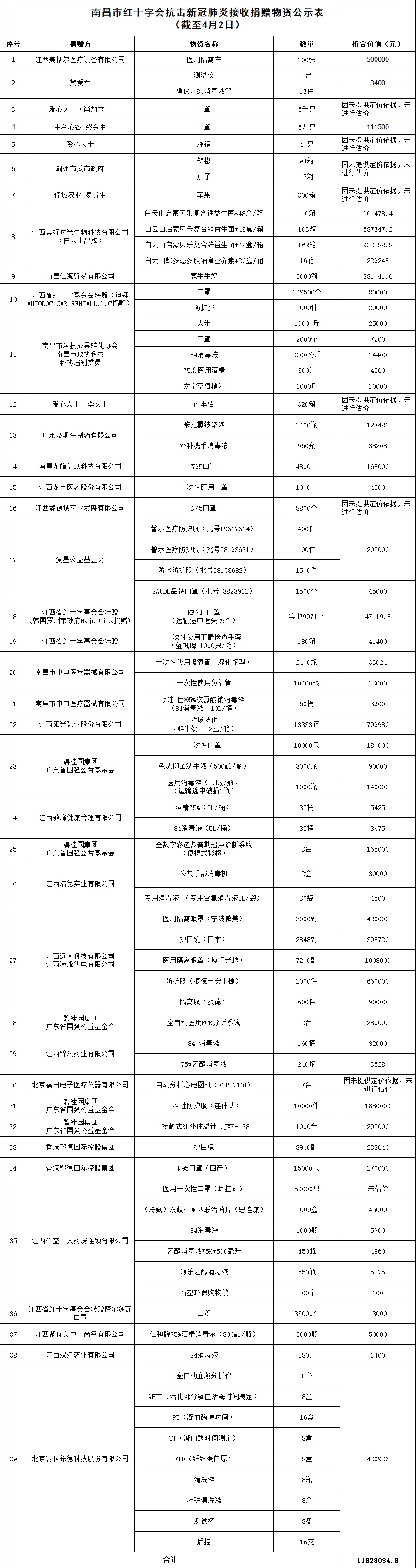 南昌市红十字会抗击新冠肺炎疫情接收捐赠款物公示(四十八)
