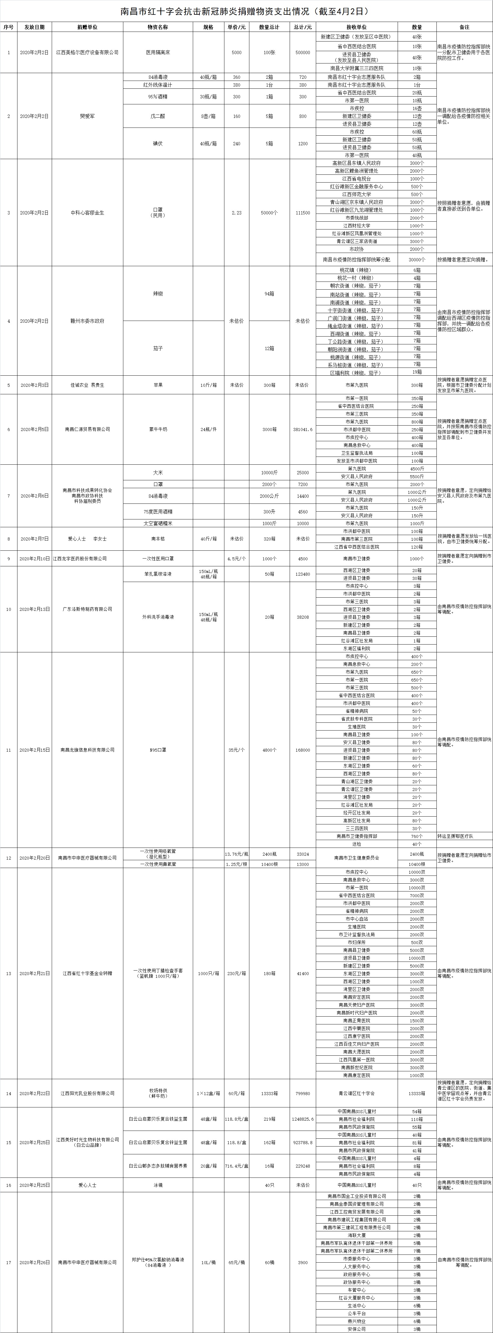 南昌市红十字会抗击新冠肺炎疫情捐赠款物支出情况公示(四十三)