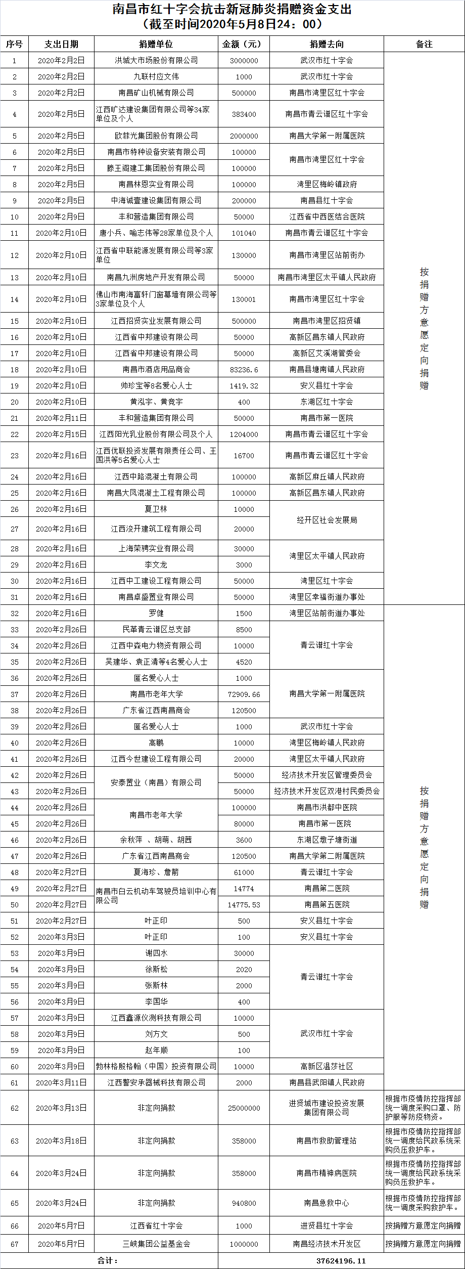 南昌市红十字会抗击新冠肺炎疫情捐赠款物支出情况公示(四十七)