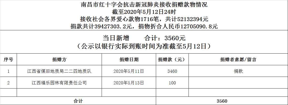 南昌市红十字会抗击新冠肺炎疫情接收捐赠款物公示(五十四)
