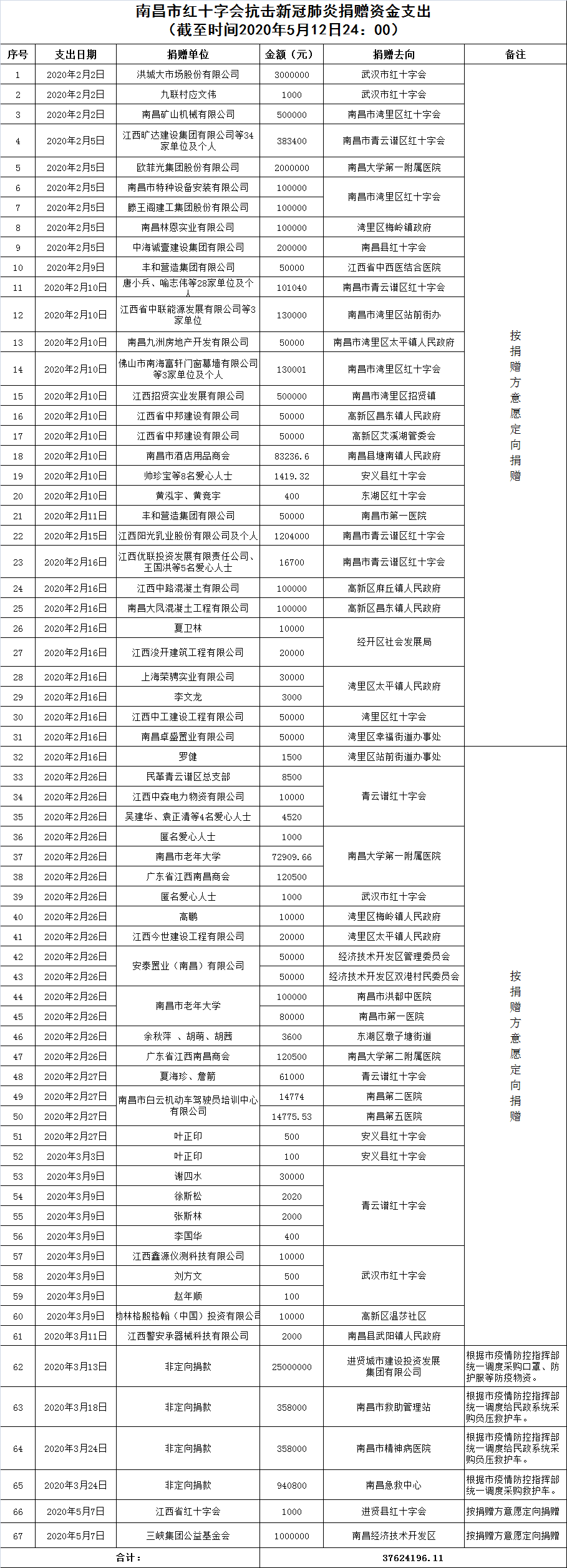 南昌市红十字会抗击新冠肺炎疫情捐赠款物支出情况公示(四十八)