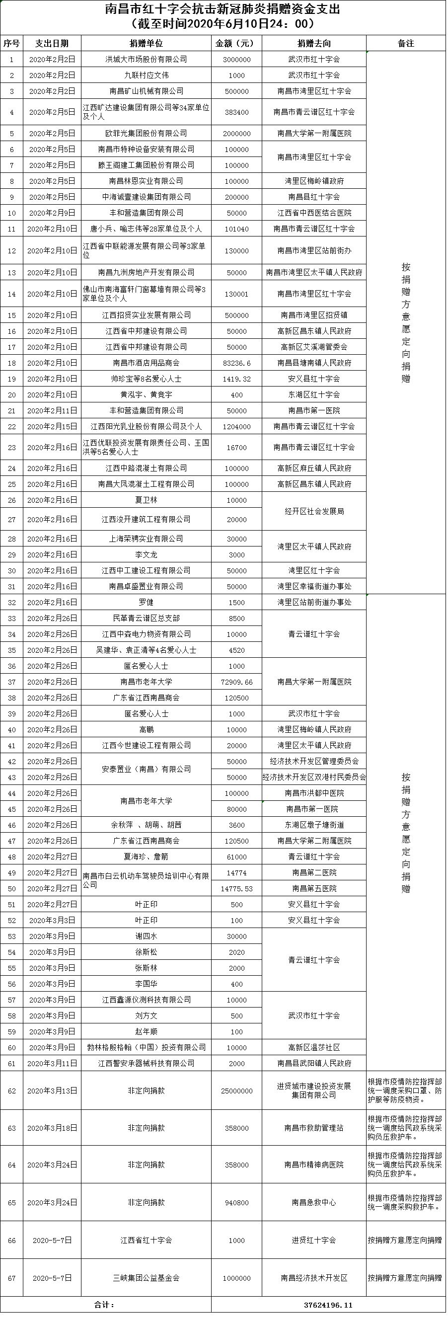 南昌市红十字会抗击新冠肺炎疫情捐赠款物支出情况公示(四十九)