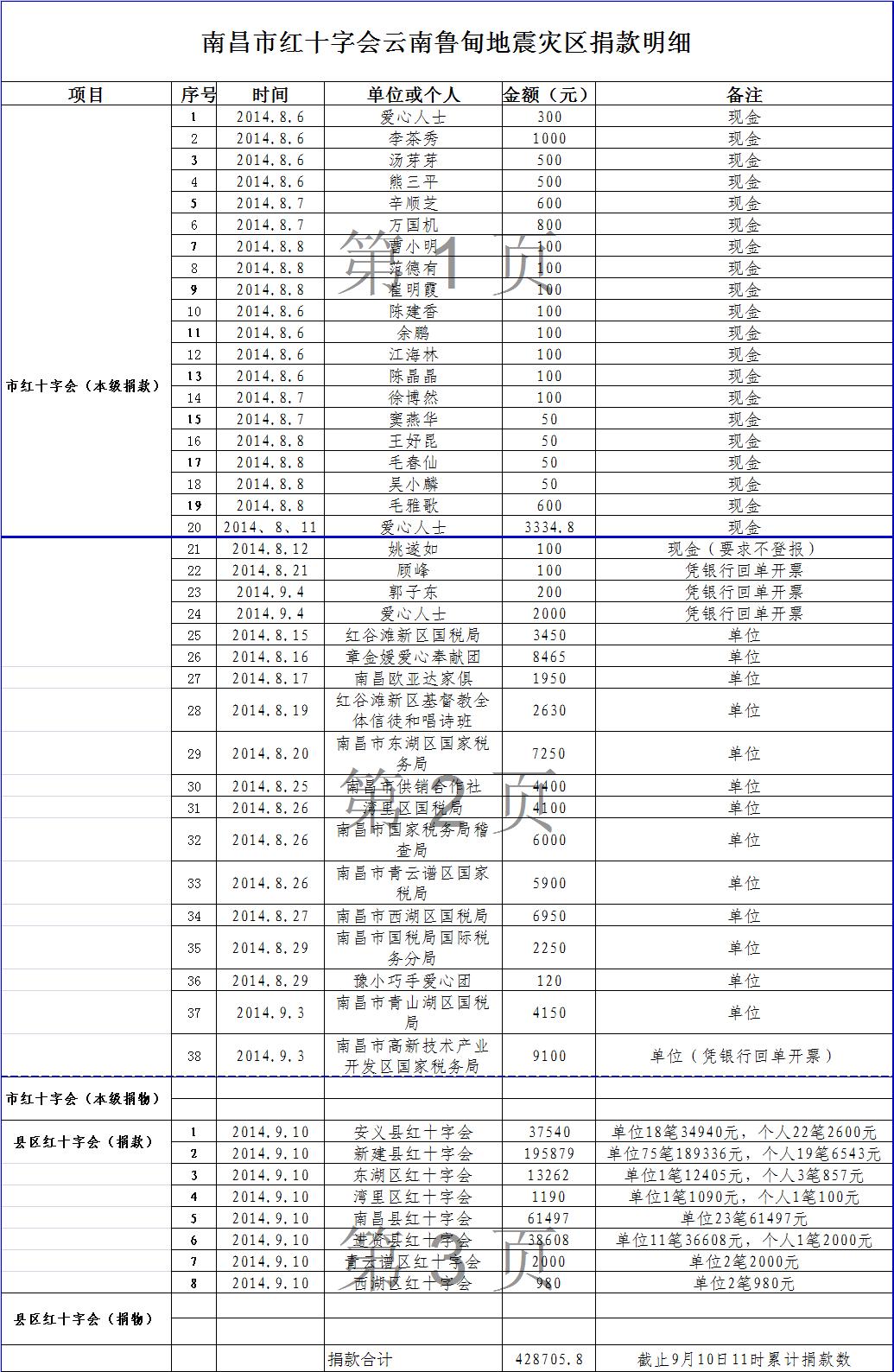 (截止9月10日)南昌市红十字会云南鲁甸地震灾区捐款明细