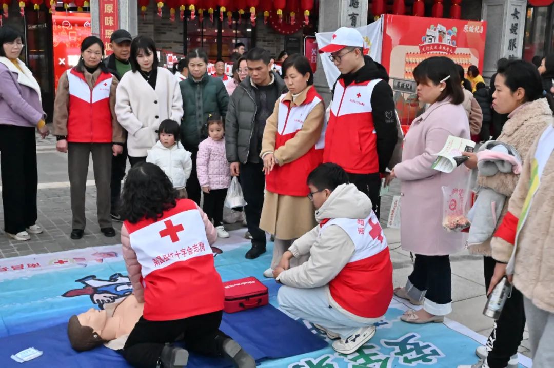 “学急救知识,赢精美好礼!”一阵阵的吆喝使得景区热闹非凡。2月12日正月初三,南昌县红十字志愿服务队组织志愿者们来到原城纪景区开展应急救护知识普及和保障活动。
