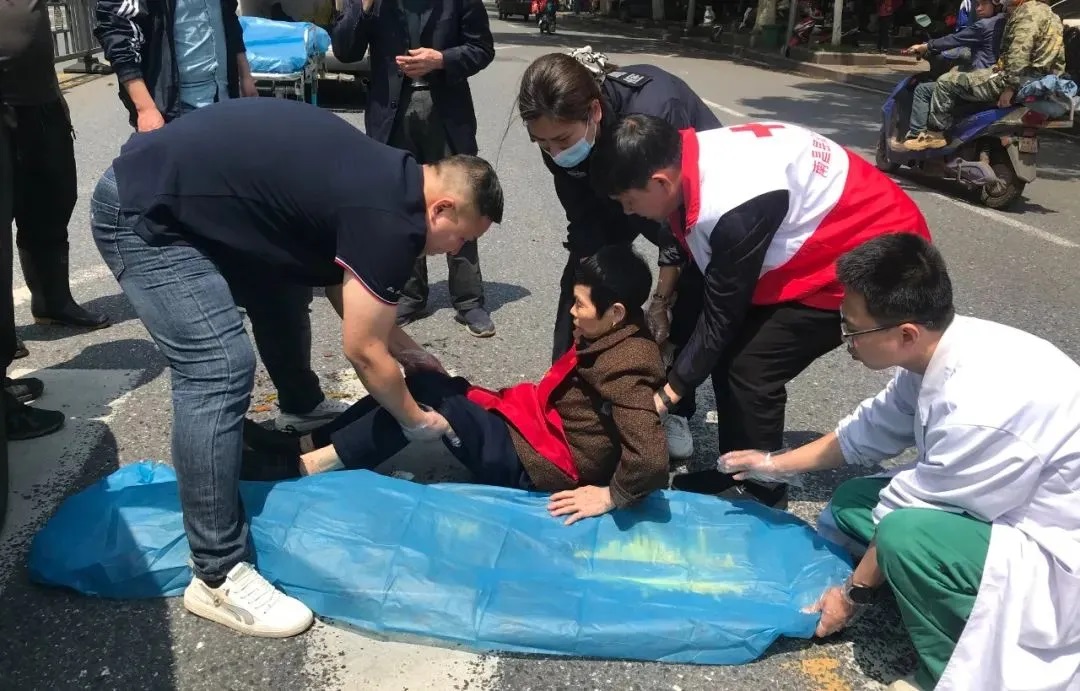 4月22日,南昌市南昌县莲塘镇莲塘中大道与老莲武路交叉路口发生了一起交通事故,一辆电动四轮车与一名7旬老太发生碰撞,老太受伤倒地。南昌县红十字阳光志愿服务队熊伟明、罗金连、吴晓丽、张国水等四名志愿者正好路过,上演“教科书式”急救,赢得现场群众纷纷点赞。