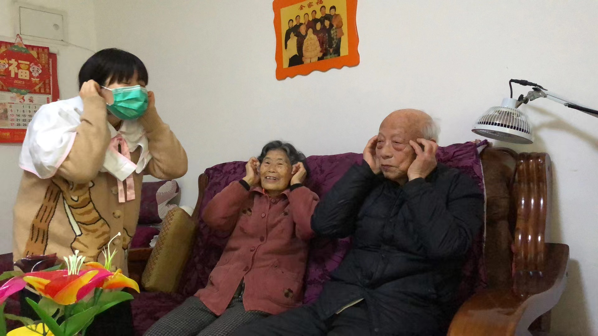 2月17日,市洪都中医院小组志愿者在红谷滩区红谷世纪花园社区开展入户探访志愿服务,教老人做保健操。