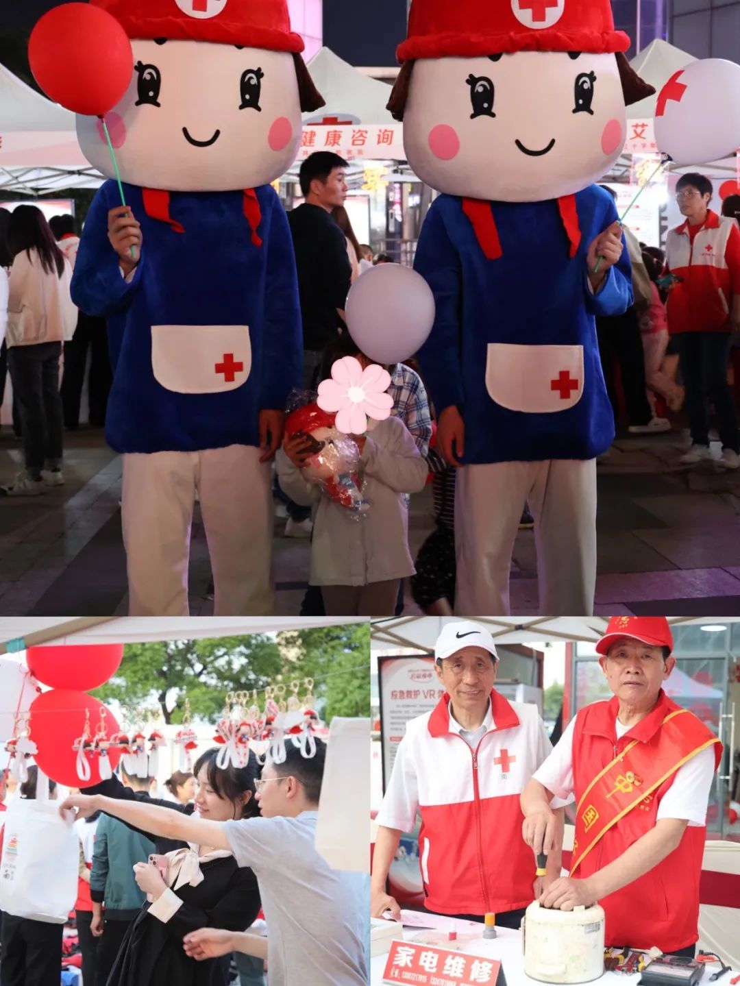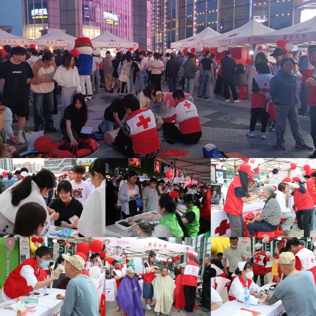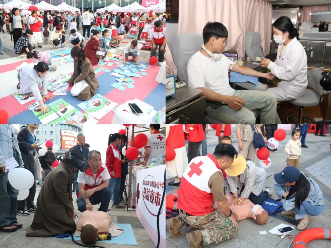 为纪念第77个世界红十字日和中国红十字会成立120周年,弘扬和践行人道、博爱、奉献的红十字精神,为群众提供家门口的公益服务,5月6日晚,南昌市红十字会联合市文明办,在青山湖区恒茂梦时代广场举办2024年南昌市文明实践+红十字公益夜市活动。该活动是今年南昌市红十字会开展纪念中国红十字会成立120周年暨红十字博爱周系列活动之一,也是南昌市红十字会连续第三年以集市形式举办的公益活动。公益集市通过部门协调联动、志愿者积极参与,组织了14支市、县(区)红十字会和文明办联系的志愿服务组织和道德模范个人,采取群众喜闻乐见、便于参与的形式,为群众提供便民服务、游戏体验、健康咨询、项目发布等4大类共14项公益服务项目,吸引了众多周边市民前来赶集,不仅让群众享受了公益服务的饕餮大餐,进一步感受了文明实践+红十字公益文化,而且为群众参与志愿服务搭建了平台,进一步营造了人人争当志愿者,个个都做文明人的良好氛围。